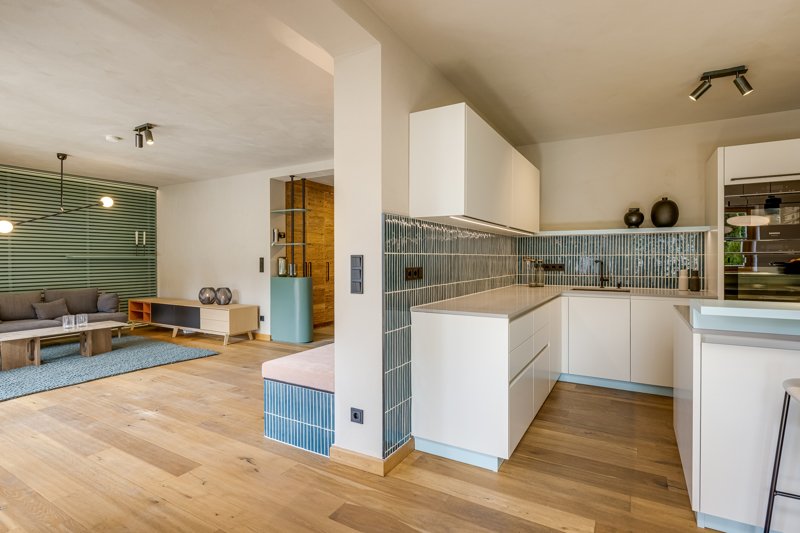 Weshalb wir das erzählen? Weil es zur Geschichte dieser modernen Gartenwohnung gehört. Die wurde nämlich ebenfalls von Tathenhorst gestaltet. Ihren „Workspirit“ bezeichnet die Münchnerin als „Auseinandersetzung zwischen Menschen und gebautem Raum im Einklang mit dessen Individualität und der Natur.“