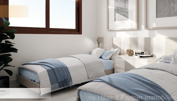 Klimaanlage (warm/kalt), Warmwasser durch Luftwärmepumpe, elektrische Fußbodenheizung in den Bädern (optional in dem gesamten Wohnbereich gegen Aufpreis bis 14.4.26 möglich), Pool + Außendusche bei Typ B0a-2 u. A0b-8 optional bis 15.4.26 möglich,