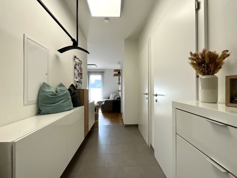 Schon beim Betreten der Immobilie werden Sie es spüren - dieses ganz besondere Gefühl! Treten Sie ein in Ihre ganz persönliche Wohlfühloase - Es erwartet Sie auf einer Wohnfläche von ca. 50 m² eine ideale Raumaufteilung mit einem lichtdurchfluteten Wohn-/Essbereich mit stylischer und sehr hochwertiger Einbauküche und Zugang zu einer kleinen Speisekammer, einem perfekt aufgeteilten Schlafzimmer, einem Bad mit großer Dusche und Fenster sowie einem separaten WC und einem geräumigen Garderobenbereich.