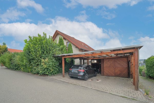 Zur Immobilie gehören zudem eine Garage, ein Stellplatz und ein Carport, die Ihnen und Ihren Gästen ausreichend Parkmöglichkeiten bieten.