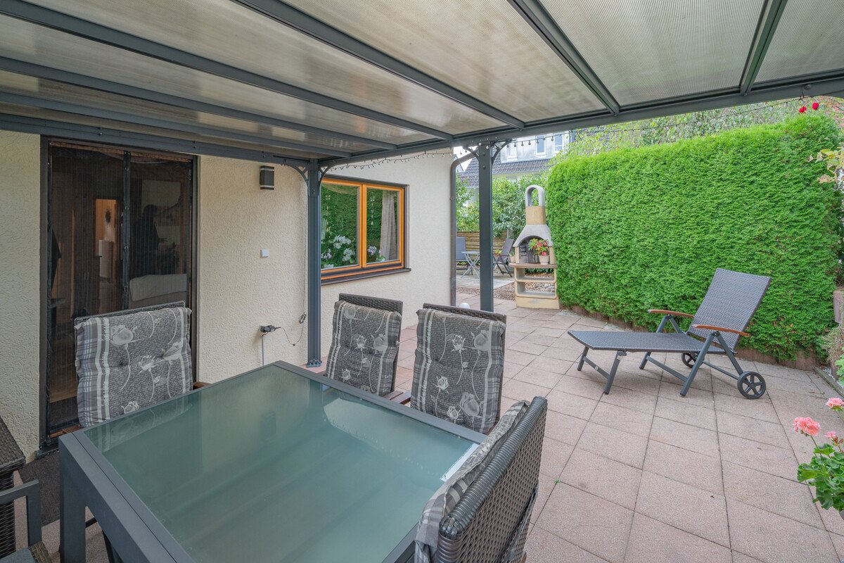 Das Haus besticht durch zahlreiche Annehmlichkeiten: Ein Balkon und eine Terrasse laden zu entspannten Stunden im Freien ein. Der vollständig unterkellerte Bereich des Hauses bietet nicht nur zusätzlichen Stauraum, sondern kann auch als Einliegerwohnung umgebaut werden, wodurch sich vielfältige Nutzungsmöglichkeiten ergeben. Ein Kamin sorgt in der kälteren Jahreszeit für behagliche Stunden.