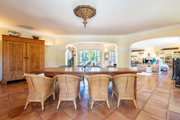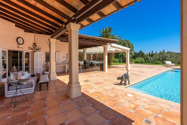 Im Zentrum der Immobilie liegt der offene Wohnbereich mit Kamin, stilvollem Essplatz und Homeoffice – alles sehr großzügig gestaltet und mit direktem Zugang zur Terrasse mit beheiztem Salzwasserpool und traumhaftem Blick auf Capdepera. Die angrenzende Landhausküche mit Frühstücksecke und Zugang zur überdachten Terrasse mit freistehendem Pizzaofen lädt zu geselligen Momenten ein.