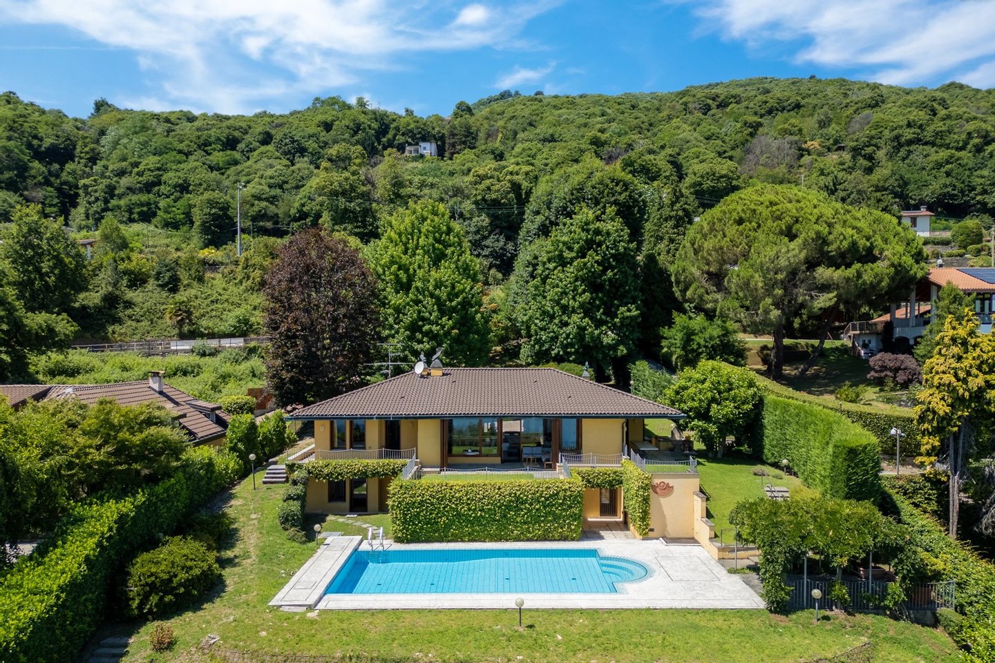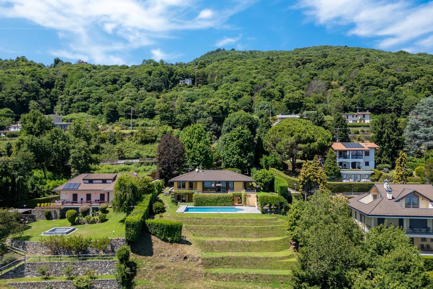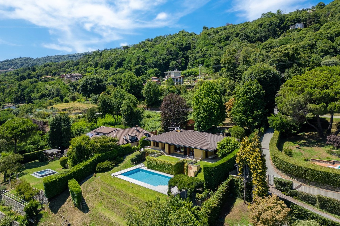 In panoramischer und zurückhaltender Lage auf den Hügeln von Lesa bieten wir eine moderne Villa mit atemberaubendem Seeblick, eingebettet in einen privaten Park von ca. 3.700 qm, zum Verkauf an. Das Anwesen befindet sich in einer der exklusivsten