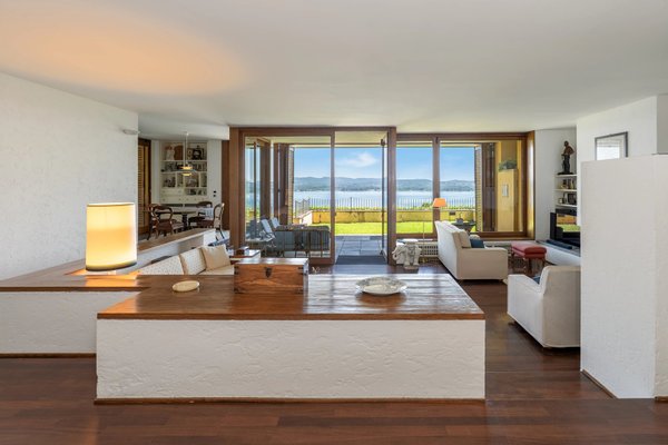 - Großes Wohnzimmer mit Panoramablick auf den See, verbunden mit dem Essbereich
