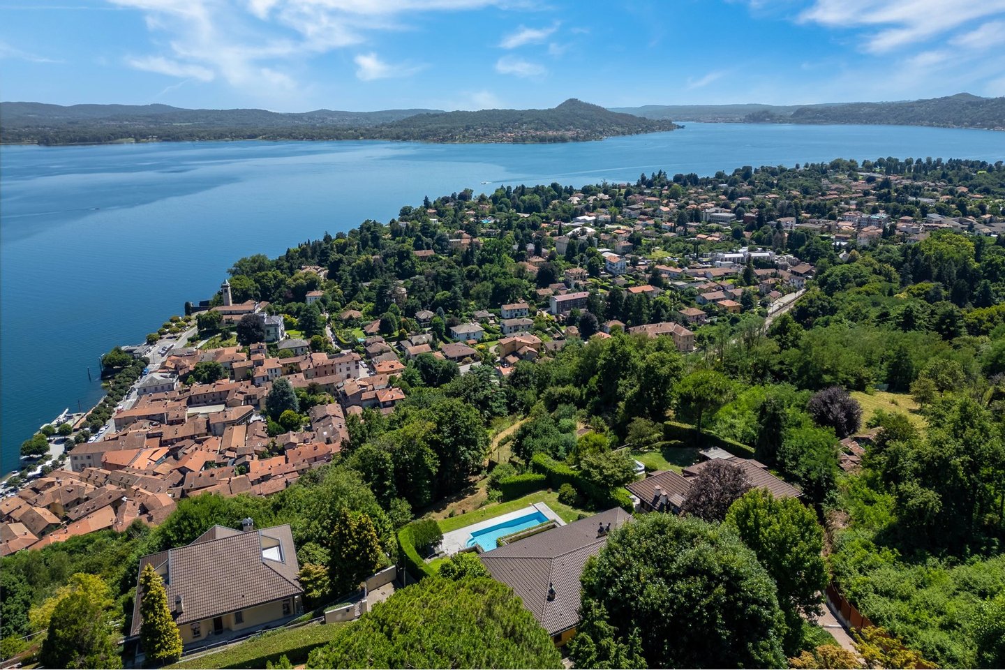 In panoramischer und zurückhaltender Lage auf den Hügeln von Lesa bieten wir eine moderne Villa mit atemberaubendem Seeblick, eingebettet in einen privaten Park von ca. 3.700 qm, zum Verkauf an. Das Anwesen befindet sich in einer der exklusivsten Wohngegenden des Lago Maggiore, nur wenige Kilometer vom Zentrum entfernt, in einer idealen Lage für diejenigen, die Ruhe, Privatsphäre und einen repräsentativen Wohnsitz suchen.