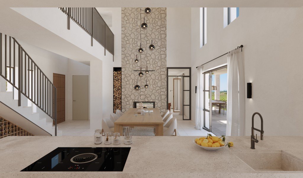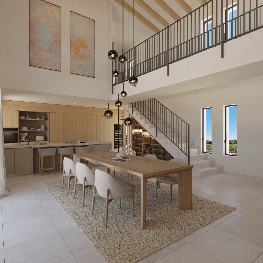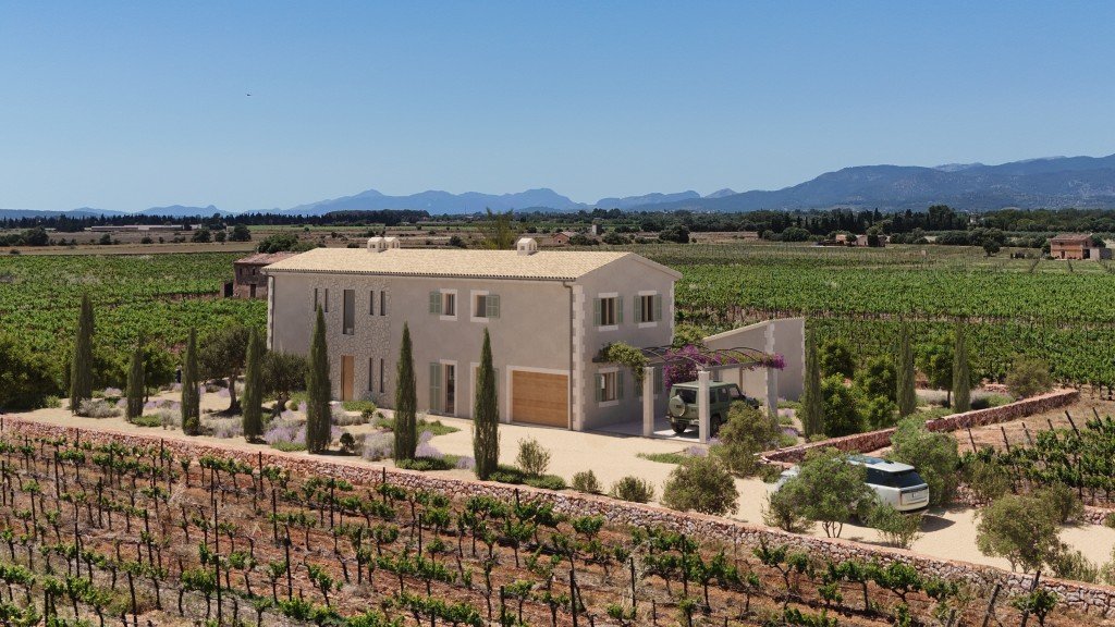 Diese beeindruckende neue Finca liegt im Herzen eines aktiven Weinguts in der Nähe von Sencelles, nur wenige Minuten von Santa Maria del Camí entfernt, und soll noch in diesem Jahr fertiggestellt werden.