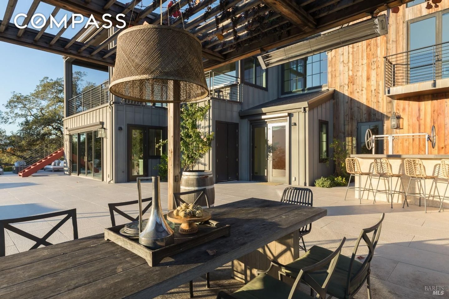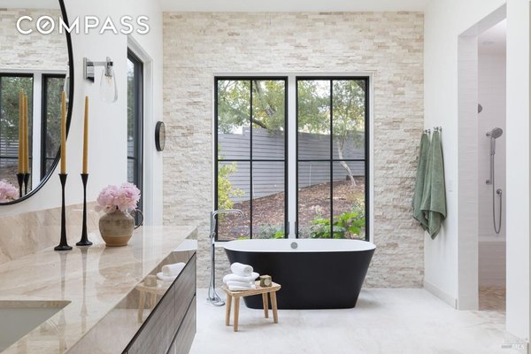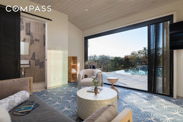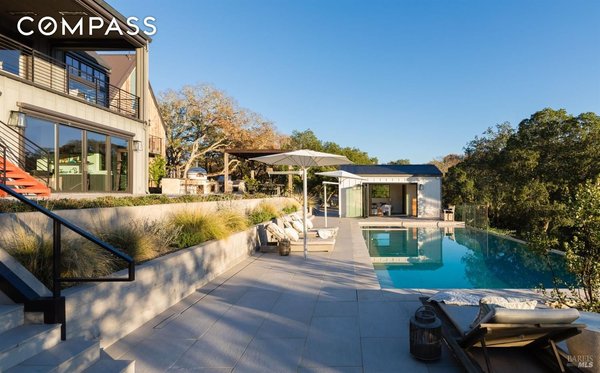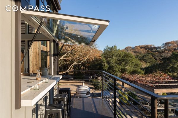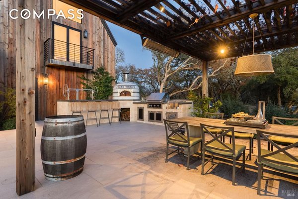 Die 1970 Warm Springs Road ist ein exquisit gestaltetes Haus mit einzigartigen Merkmalen, die überall zu finden sind. Das wunderschöne Anwesen bietet eine idyllische Umgebung mit alten Eichen, einer Wiese und gepflegter Landschaftsgestaltung. Die Außenküche verfügt über einen Forno Bravo-Pizzaofen, eine Paella-Station und einen Hestan-Grill, der von dem Grill inspiriert ist, der in der Ikone des Napa Valley, The French Laundry, zu finden ist. Das Innere des Hauses ist ebenso atemberaubend. Der Raum im ersten Stock verfügt über polierte Betonböden, eine Wet-Bar und ein vollständig schallisoliertes Aufnahmestudio. Im Hauptwohnbereich finden Sie ein Infinity-Fenster, das ein Baumhaus-Feeling vermittelt. Eine weitläufige Terrasse lädt Sie ein, die atemberaubende Aussicht auf die Weinberge und den dahinter liegenden Sonoma Mountain zu erleben. Die Küche verfügt über Premium-Geräte, maßgefertigte Schränke und ein ausklappbares Fenster, das eine nahtlose Unterhaltung im Innen- und Außenbereich ermöglicht. Das Hauptschlafzimmer ist ein Zufluchtsort zwischen den Bäumen und jedes Gästezimmer verfügt über ein eigenes Bad. Mit seiner malerischen Umgebung und dem tadellosen Design ist dieses Haus wirklich bemerkenswert.