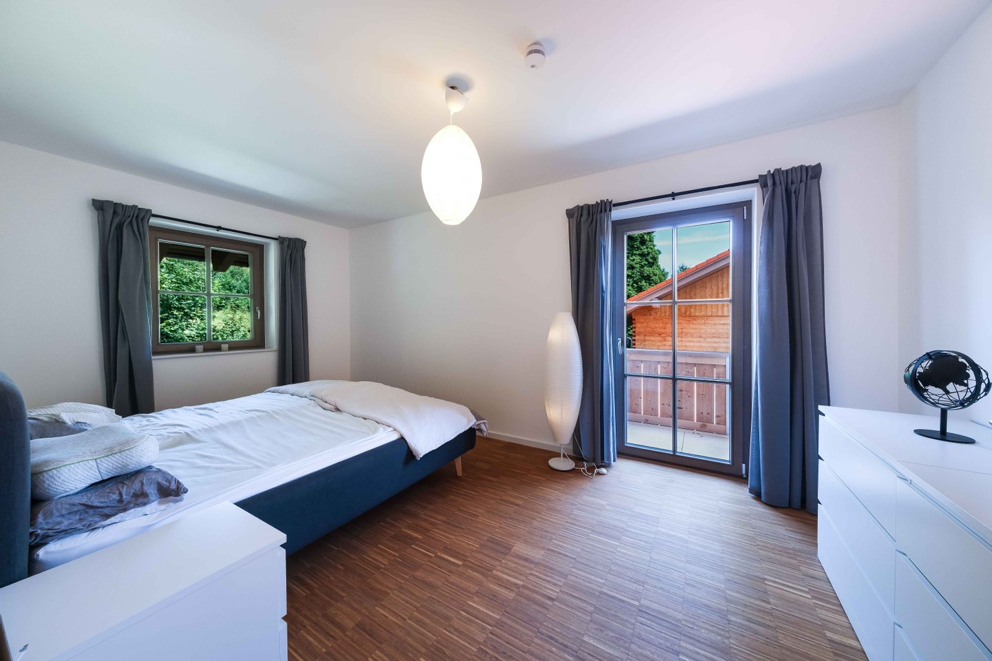 Im Obergeschoss stehen drei Schlafzimmer zur Verfügung, die alle Zugang zu einem sonnig gelegenen Balkon haben. Das lichtdurchflutete Studio im Dachgeschoss bietet sich hervorragend als Rückzugsort oder Homeoffice an.