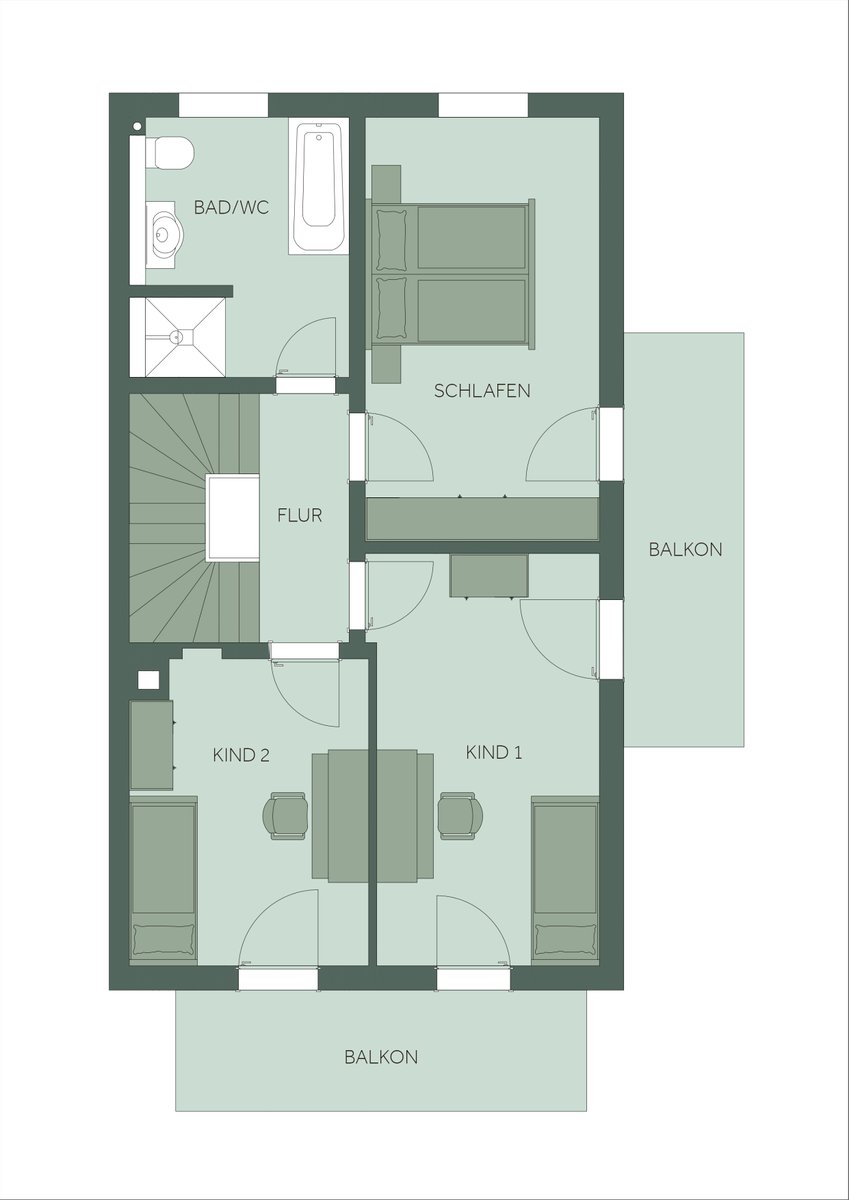 Der Grundriss überzeugt durch einen großzügigen Wohn- und Essbereich mit offener Küche. Von hier ...mehr lesen