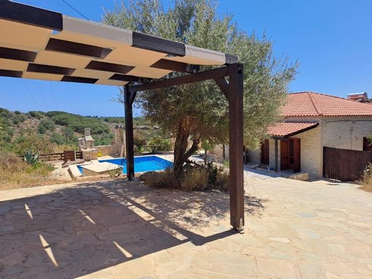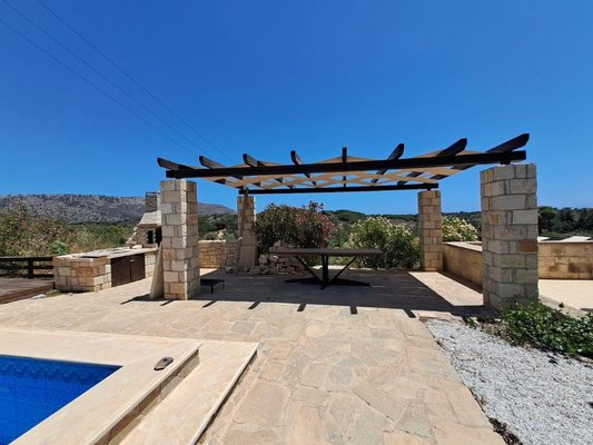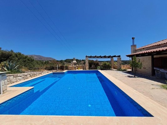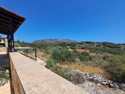 Der angelegte Garten bietet mehrere ruhige Ecken, die zum Entspannen, Lesen oder einfach nur zum Genießen der friedlichen Umgebung einladen. Von allen Seiten bietet das Anwesen einen ungestörten Blick auf die kretische Landschaft.