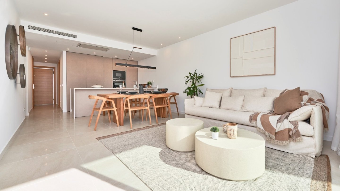 Dieses stilvolle Apartment vereint anspruchsvolle Architektur mit modernster Haustechnik und einer besonders einladenden Wohnatmosphäre. Großzügige Raumaufteilung, hochwertige Ausstattung und eine durchdachte Ausrichtung sorgen für ein Wohngefühl der Extraklasse.Herzstück der Immobilie sind drei lichtdurchflutete, großzügige Schlafzimmer und zwei moderne Badezimmer. Das Masterschlafzimmer verfügt über ein elegantes en-suite-Bad, das Privatsphäre und Komfort bietet. Für ein angenehmes Raumklima zu jeder Jahreszeit sorgen eine Klimaanlage (warm/kalt) sowie eine elektrische Fußbodenheizung in den Bädern. Die offen gestaltete Designerküche überzeugt mit klarer Linienführung und modernem Stil. Ausgestattet mit hochwertigen Siemens-Elektrogeräten erfüllt sie höchste Ansprüche - ideal für alle, die gerne kochen und genießen. Die durchdachte Außenanlage bietet vielfältige Möglichkeiten zur Erholung: Ein gepflegter Privatgarten mit automatischer Bewässerung, ein großzügiger Gemeinschaftsgarten sowie ein stilvoll angelegter Poolbereich mit Außendusche und Beleuchtung schaffen eine entspannte Wohlfühlatmosphäre im Freien. Ein eigener Pkw-Stellplatz, gesichert durch ein elektrisches Zufahrtstor, gehört ebenfalls zur Ausstattung. Eine bereits installierte Ladestation für Elektrofahrzeuge ermöglicht komfortables und zukunftsorientiertes Parken direkt am Haus.
