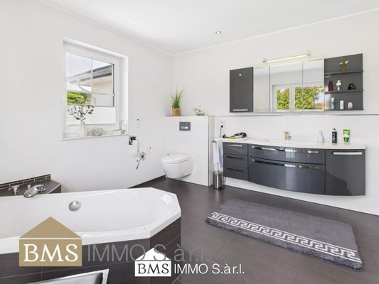 Erleben Sie den Charme dieses wunderschönen großzügigen Bungalows in Meckel. Mit einer Wohnfläche von 135 m² bietet das Haus zwei geräumige Schlafzimmer, ideal für kleine Familien, Paare oder Besuch. Eines der Highlights ist das moderne Badezimmer mit einer luxuriösen Badewanne, die zum Entspannen einlädt. Von hier haben Sie durch das bodentiefe Fenster Zugang zum Gartenbereich.