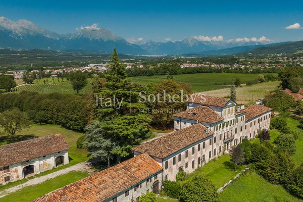 Die schöne Villa der Grafen Piloni, aus dem 16. Jahrhundert stammend und nur wenig entfernt vom Standort der ursprünglichen Burg erbaut, erstreckt sich über einen Hügelrücken und bietet einen herrlichen Blick auf die unberührte Landschaft der Dolomiten.