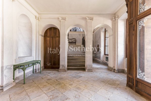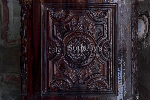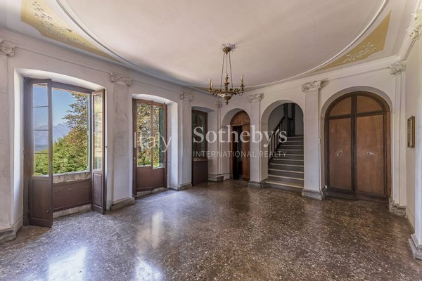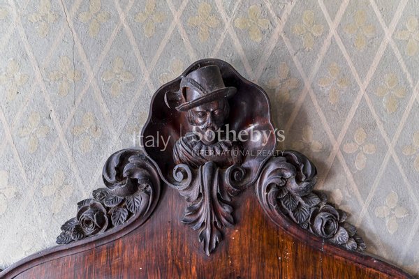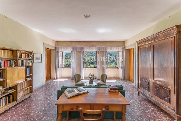 Die Innenräume zeichnen sich durch hochwertige Ausstattungen und prächtige Fresken in einigen Räumen aus. Der Zugang zur Villa führt über einen großzügigen Eingangsbereich mit einer imposanten Steintreppe. Von hier aus gelangt man in den Hauptsalon mit wunderschöner bemalter Decke und majestatischem Kamin, in das Esszimmer sowie in die weiteren Räume der Villa. Einige Holzböden stellen wahre Kunstwerke dekorativer Handwerkskunst dar.