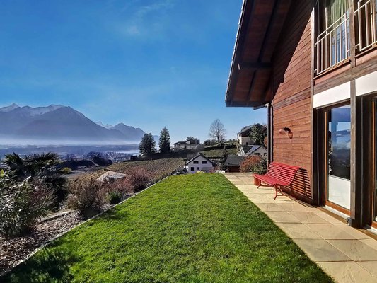 Die Unterkunft bietet einen schönen Blick auf den Genfersee, die Berge und das Chablais.