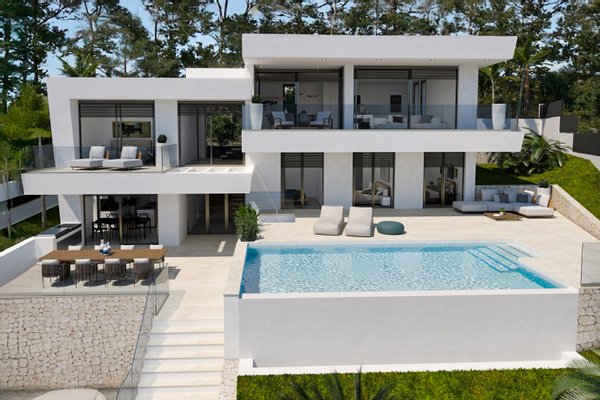 Die zusätzlichen 3 Schlafzimmer im Erdgeschoß mit seinen dazugehörigen Badezimmern bieten genügend Platz für eine große Familie oder Gäste. Ein Pool von 35m², zahlreiche Terrassen, ein 40m² großer Kellerbereich mit geplanter Bodega und Stellplätze für 2 Autos runden das Angebot noch einmal ab.