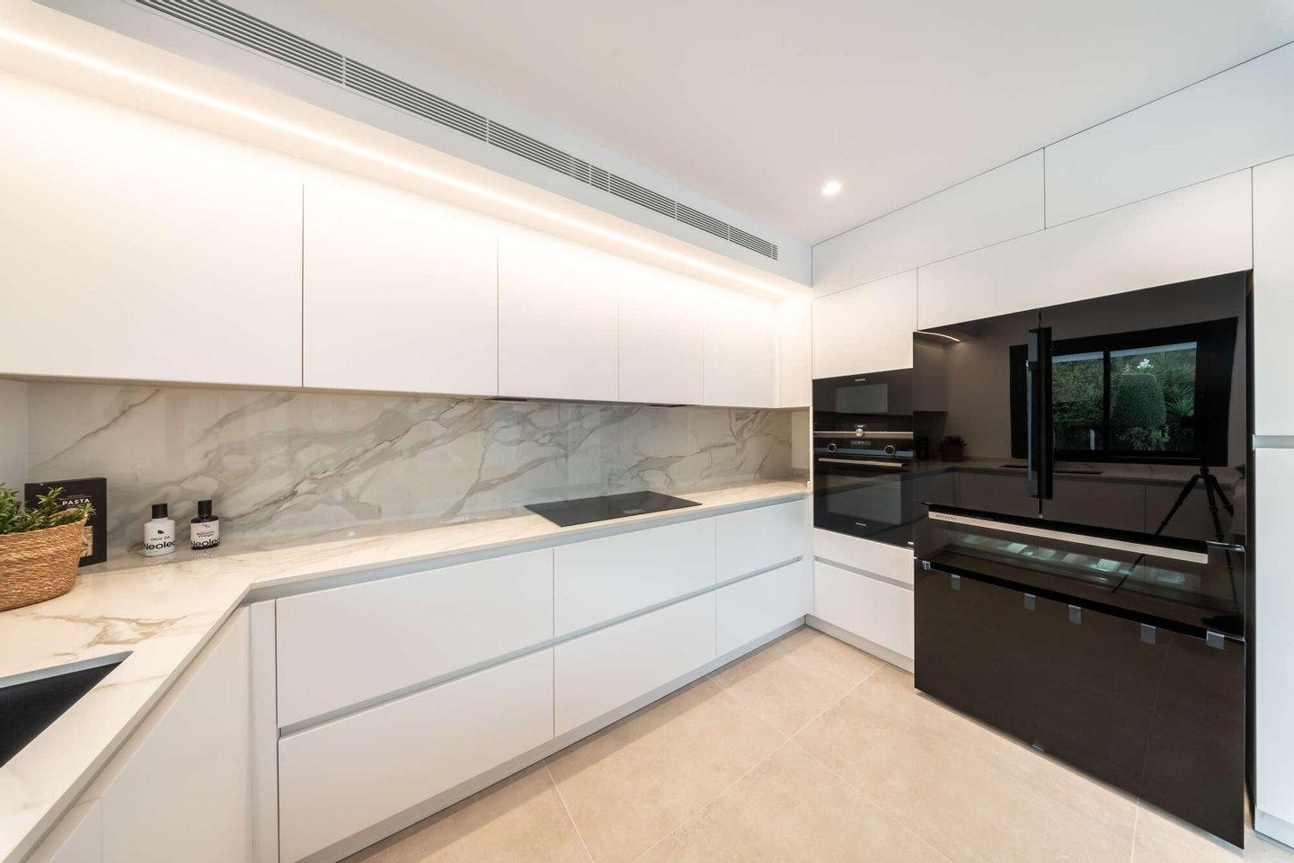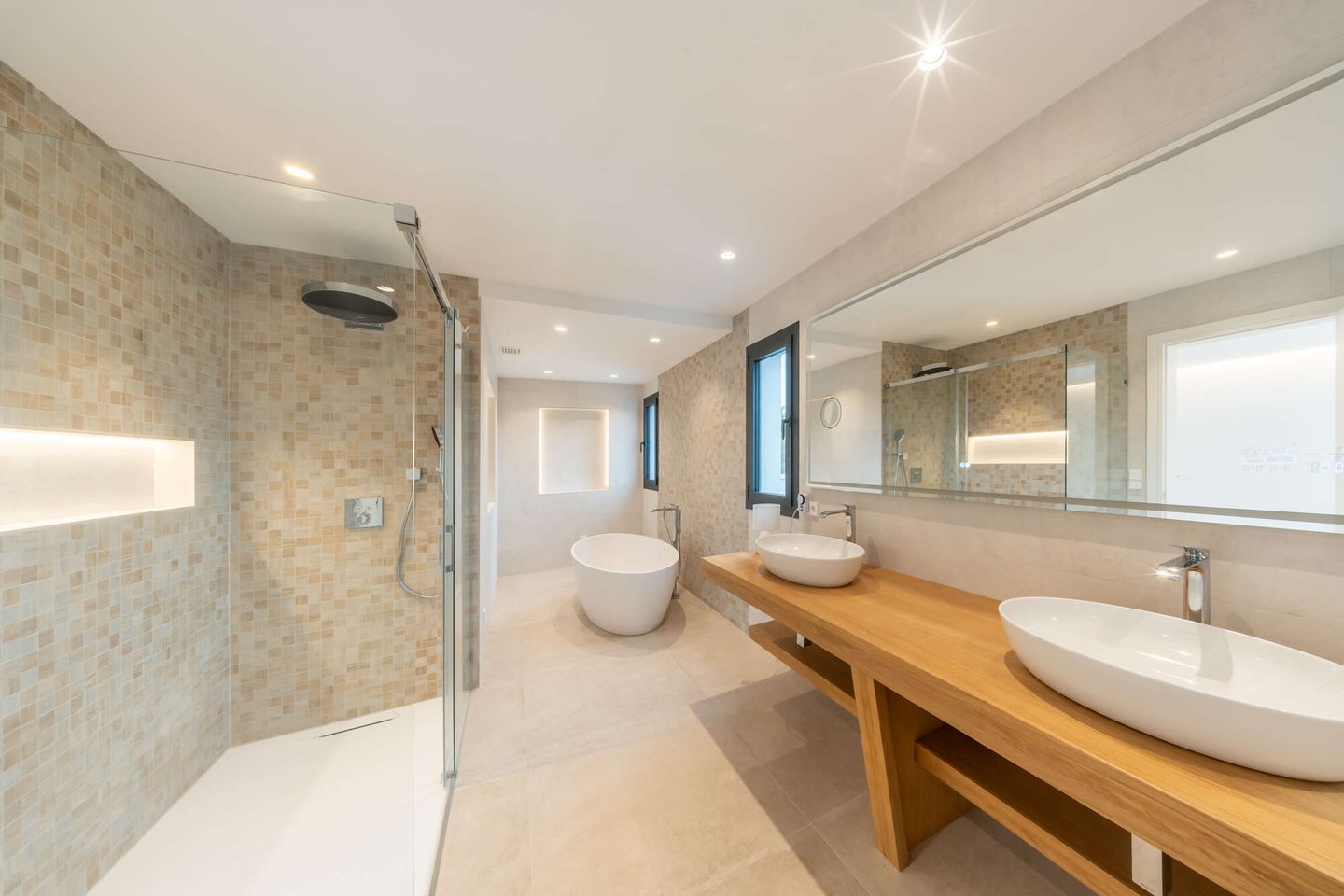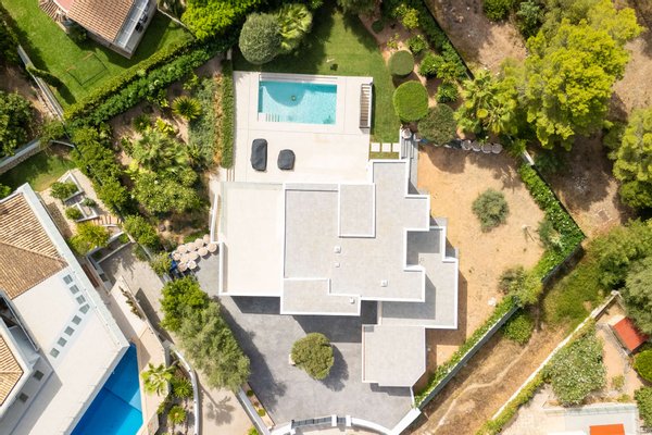 Die Villa verfügt über insgesamt 6 Schlafzimmer und 5 Badezimmer (davon mehrere en suite). Der lichtdurchflutete Wohn- und Essbereich mit offener, hochwertig ausgestatteter Küche schafft ein modernes, offenes Wohngefühl.