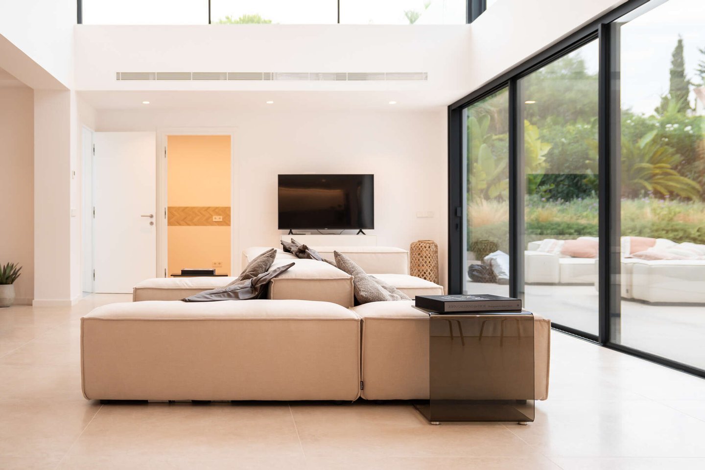 Große Fensterfronten verbinden Innen- und Außenbereich harmonisch. Eine Master-Suite mit Ankleide und Bad en suite sowie weitere Schlafzimmer bieten höchsten Komfort.