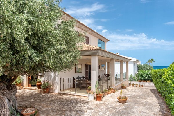 Nur 150 Meter vom Meer entfernt liegt dieses außergewöhnliche Chalet in Son Serra de Marina – ein modernes, lichtdurchflutetes Zuhause, das durch klare Linien, hochwertige Materialien und mediterranen Charme besticht. Der elegante Eingangsbereich mit seiner charakteristischen Steinfassade in sanfter Rundung verleiht dem Haus bereits beim Betreten eine besondere Note. Im Garten sorgen ein Oliven- und ein Johannisbrotbaum für natürliche Schattenplätze und ein einladendes Ambiente.
