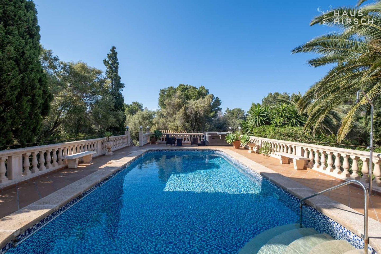 Der Außenbereich ist eine wahre Oase: Entspannen Sie im gepflegten Garten, ziehen Sie Bahnen im Pool mit Gegenstromanlage oder genießen Sie den Whirlpool. Ein besonderes Highlight ist das noch unbenutzte Saunahaus im hinteren Teil des Grundstücks.