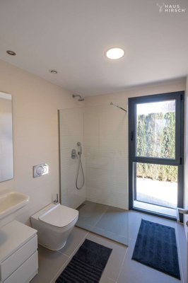 Für ein optimales Raumklima und höchste Lebensqualität sorgen die großen, doppelverglasten Fenster, die bereits mit Moskitonetzen und modernen Beschattungssystemen ausgestattet sind. Die Badezimmer präsentieren sich als wahre Wohlfühlorte und verfügen über individuell regelbare Fußbodenheizungen. Das En-Suite-Bad beeindruckt zudem mit einer großzügigen Dusche, Doppelwaschbecken und einem separaten WC. Dank der integrierten Smarthome-Technologie behalten Sie zudem die volle Kontrolle über Ihr Zuhause, selbst wenn Sie gerade auf Reisen sind.