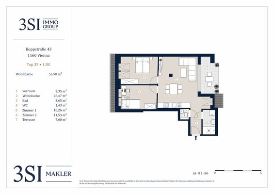 Mit einer Wohnfläche von ca. 56,5 m² sowie einer charmanten Terrasse bietet dieses Apartment im 1. Dachgeschoss der Koppstraße 43 modernes Wohnen in exklusiver Ausführung. Die intelligente Grundrissgestaltung schafft eine klare Trennung von Wohn- und Schlafbereich und überzeugt durch helle, offene Räume.