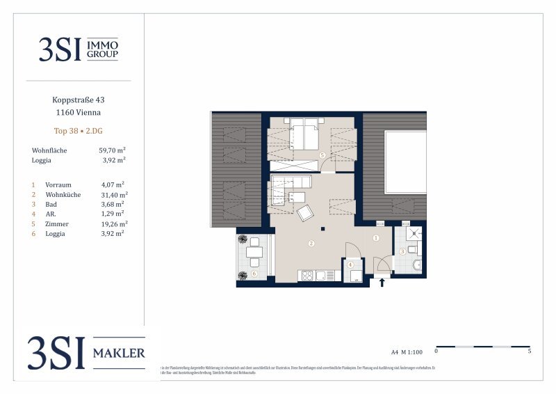 Top 38 - Moderne 2-Zimmer-Dachgeschoss-Wohnungmit Loggia