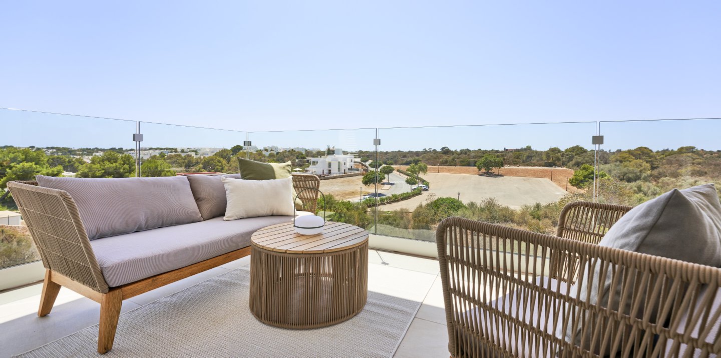 Wohnungen bieten ebenfalls großzügige Terrassen mit herrlichem Blick auf die ländliche Umgebung, die schön angelegten Gemeinschaftsgärten sowie die Pools.