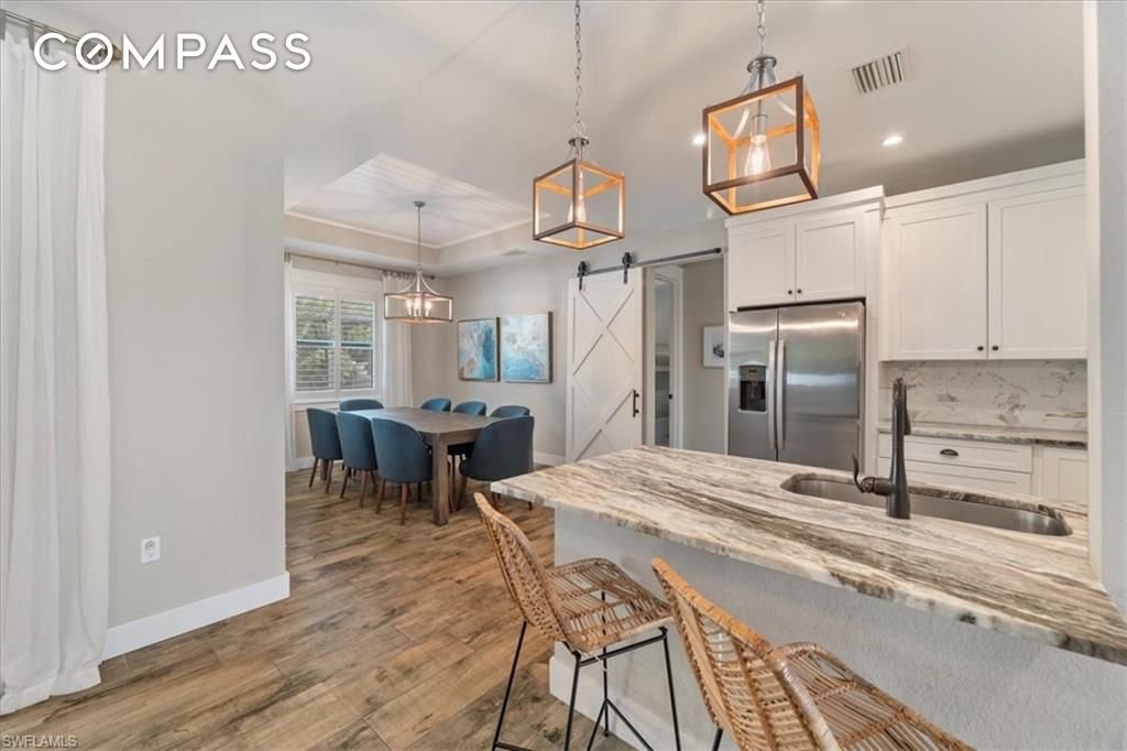 Willkommen in 3554 McComb Lane, einer exquisiten Residenz, die nur 2 Meilen vom unberührten Bonita Beach entfernt liegt und sich perfekt für diejenigen eignet, die eine Mischung aus Luxus und Küstenleben suchen. Dieses Haus aus dem Jahr 2020 erstreckt sich über 1.770 Quadratmeter und ist mit anspruchsvollem Stil und elegantem Design ausgestattet. Treten Sie ein und entdecken Sie eine harmonische Mischung aus Eleganz und Modernität mit Holzdielenfliesenböden und 12 Fuß hohen Decken, die im ganzen Haus ein luftiges und weitläufiges Gefühl vermitteln. Das Herzstück dieser Residenz ist eine wunderschön eingerichtete Küche mit atemberaubenden Granit-Arbeitsplatten und Fliesenakzenten, die eine perfekte Arena für kulinarische Kreativität bietet. Die Master-Suite ist eine Oase des Luxus und verfügt über ein geräumiges Layout mit hochwertigen Oberflächen. Jedes Detail wurde sorgfältig durchdacht, von rustikalen Scheunentorakzenten bis hin zum nahtlosen Fluss der Innenräume. Unterhalten Sie sich oder entspannen Sie sich in Ihrer privaten Oase im Freien. Der weitläufige Hinterhof ist der Traum eines jeden Entertainers, komplett mit einem abgeschirmten Pool mit Sonnenregal, einem Spa, einem Pavillon und einer Feuerstelle für abendliche Zusammenkünfte. Der Hof wurde sorgfältig mit duftenden Bepflanzungen angelegt, die alle von einem automatischen Bewässerungssystem gepflegt und mit strategischer Beleuchtung beleuchtet werden. Eine abgeschirmte Veranda, die mit passenden Pflastersteinen aufgewertet wurde, bietet das ganze Jahr über Vergnügen, während die Einfahrt ausreichend Parkplätze bietet. Dieses Haus ist auch komplett möbliert und bietet ein müheloses Einzugserlebnis. Erleben Sie das zeitgenössische Leben an der Küste vom Feinsten, nur wenige Minuten von den sonnenverwöhnten Ufern des Golfs entfernt. Diese Residenz ist ein Zeugnis für überlegene Handwerkskunst und feines Wohnen und bereit, Sie zu Hause willkommen zu heißen. Tolle Investitionsmöglichkeit mit Mieteinnahmen!
