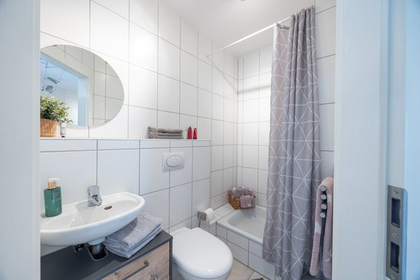 - Lichtdurchflutetes Badezimmer mit Wanne und Dusche im Obergeschoss