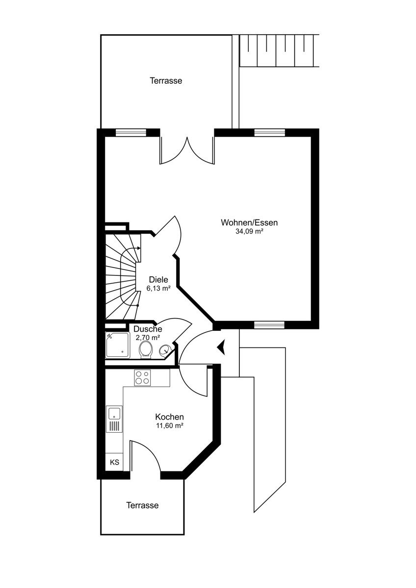 - Gästebad mit Dusche und WC im Erdgeschoss