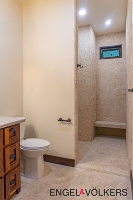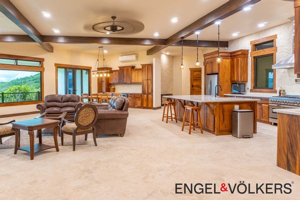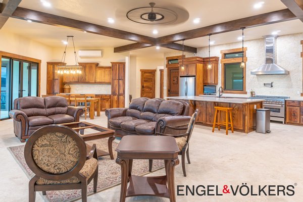 Sowohl das Haupthaus als auch die Gäste-Casita sind einstöckig und vollständig ADA-konform und bieten einfachen Zugang und Komfort für alle. Das Haupthaus ist in einem kreisförmigen Layout gestaltet, um die Aussicht von jedem Raum aus zu maximieren, und ist ein Schaufenster für hochwertige Handwerkskunst, importierte Leucht- und Sanitärarmaturen und durchdachte Details. Die überdachte Terrasse gibt den Ton für ein nahtloses Leben im Innen- und Außenbereich an, ideal zum Unterhalten oder einfach nur zum Genießen der umliegenden Schönheit.