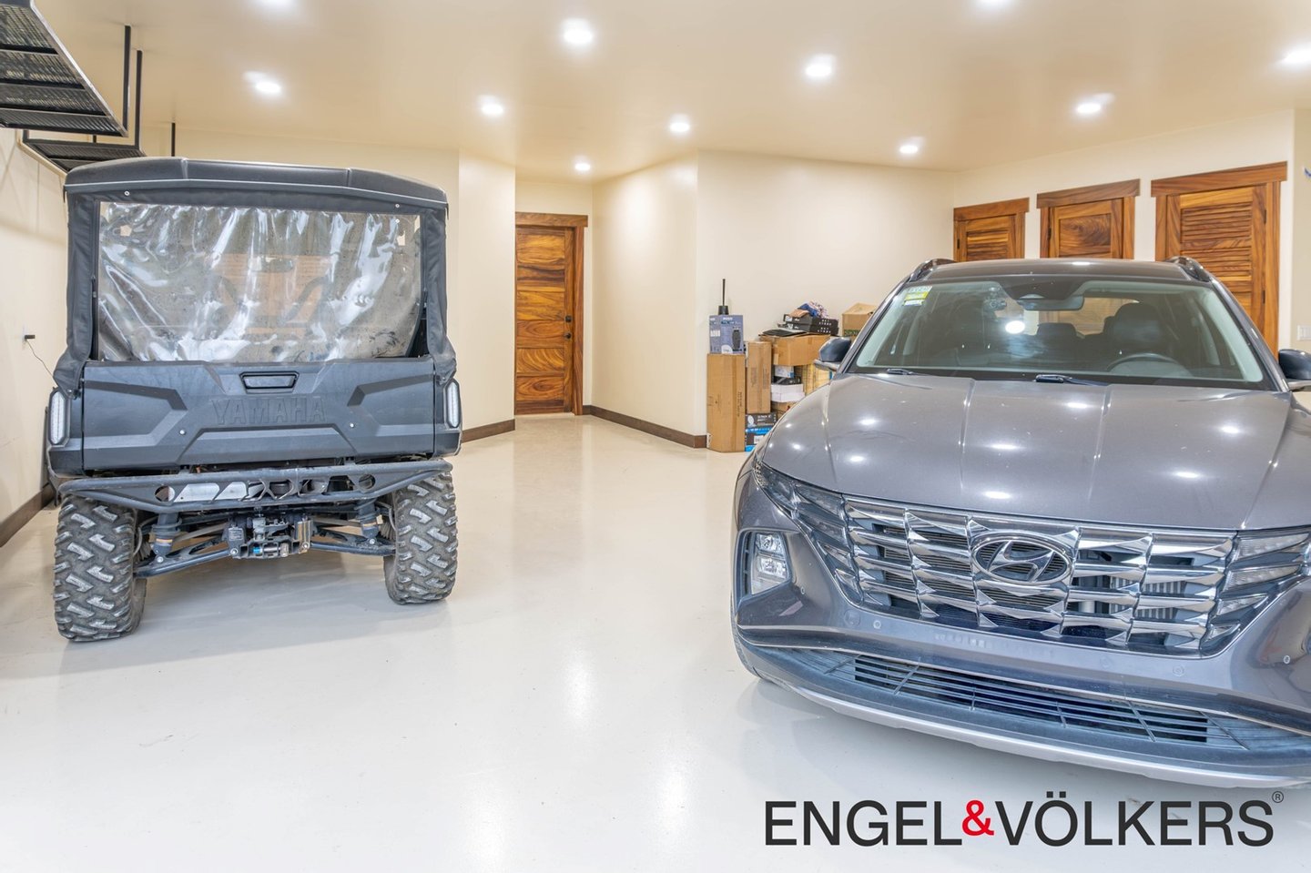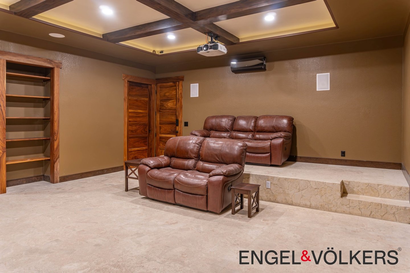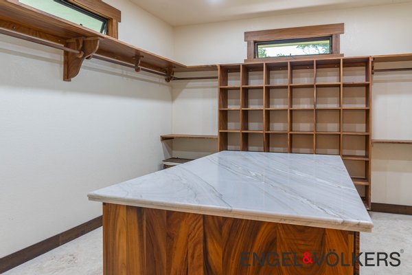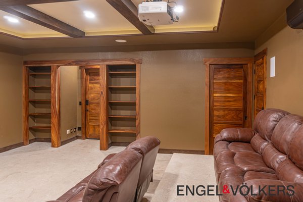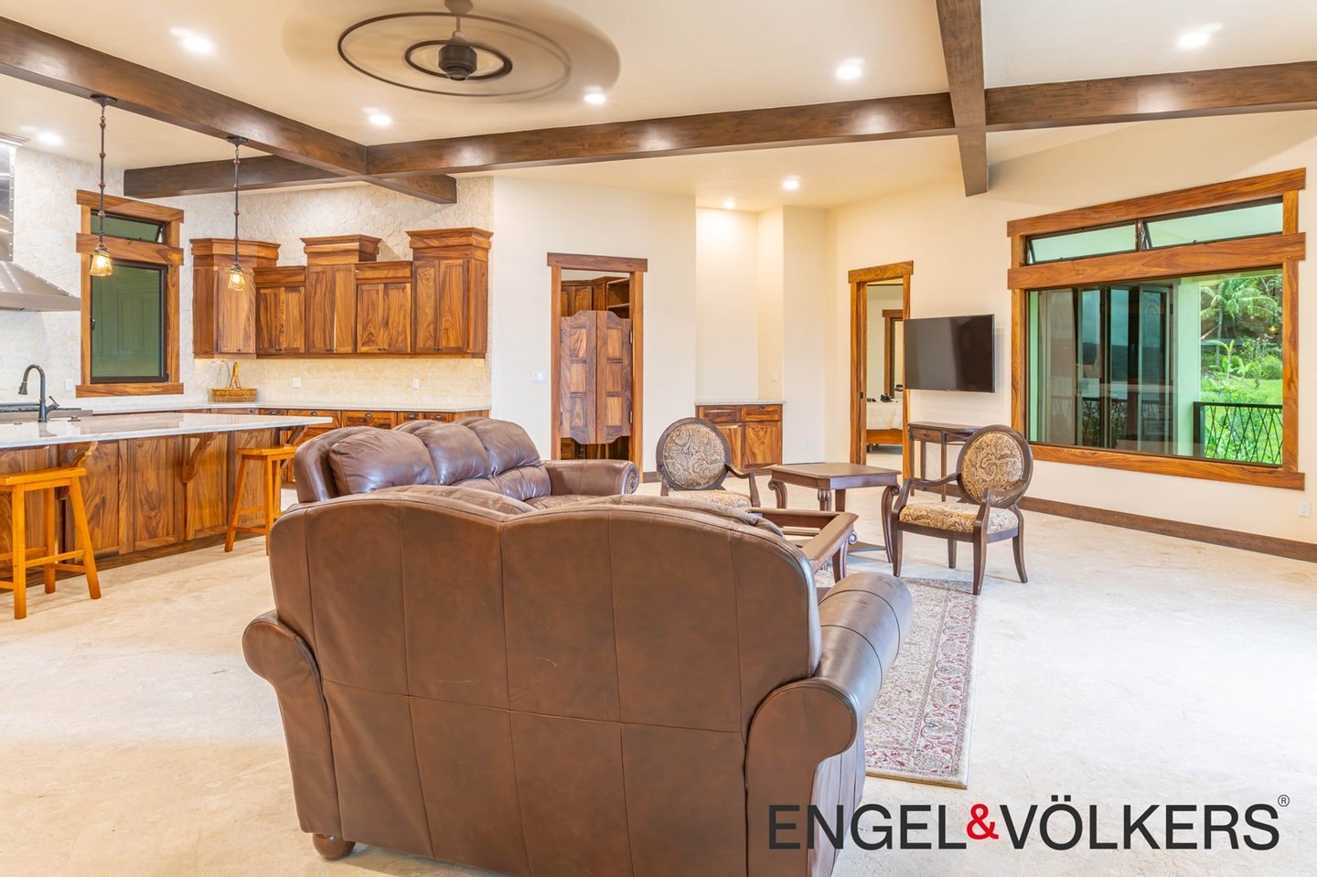 Im Herzen des Hauses befindet sich ein maßgefertigter großer Raum mit Türen, Schränken, Fußleisten und Verkleidungen aus massivem Guanacaste-Holz. Die Küche des Küchenchefs ist mit erstklassigen importierten ZLINE- und Bosch-Geräten, einer großen Insel, Quarzit-Arbeitsplatten und einer begehbaren Butler-Speisekammer mit Tiefkühltruhe, Spüle und zusätzlichen Guanacaste-Schränken ausgestattet. Es gibt importierte Kupferspülen im gesamten Haupthaus und in der Casita.