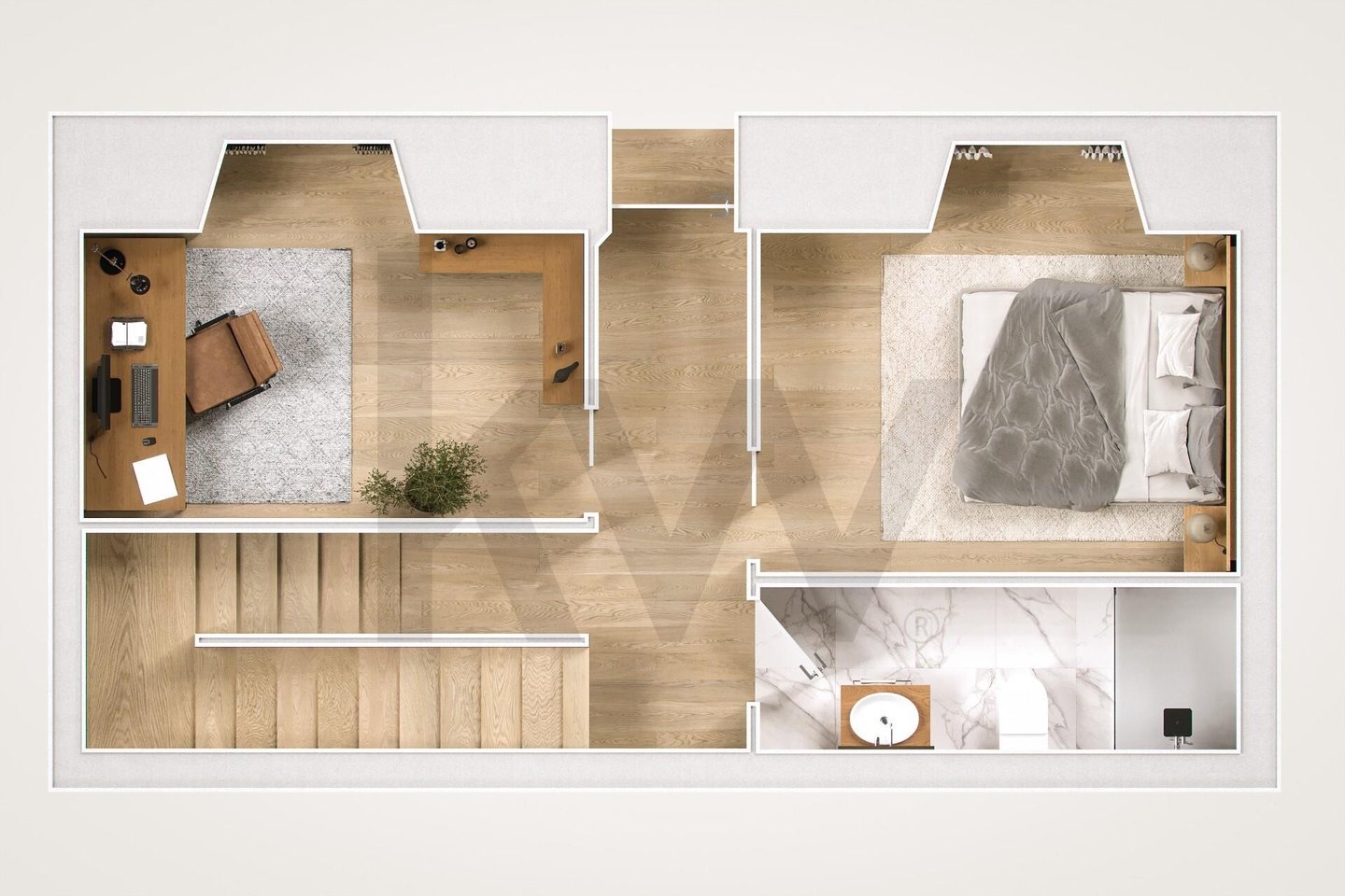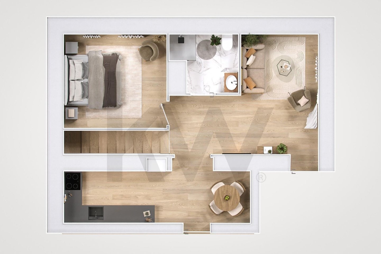- Zwei Schlafzimmer plus ein Büro mit reichlich natürlichem Licht und flexibler Nutzung,