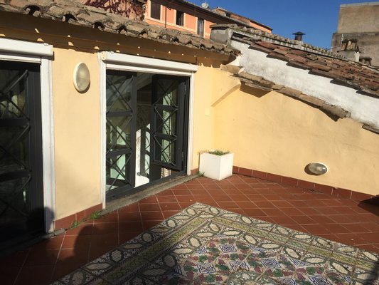 Im Herzen von Trastevere, an den Hängen des Janiculum-Hügels, befindet sich dieses seltene Anwesen mit einzigartigen Merkmalen, Ausblicken und mehreren heterogenen, aber allesamt exklusiven und ruhigen Außenbereichen, mit Blick auf die alten Dächer