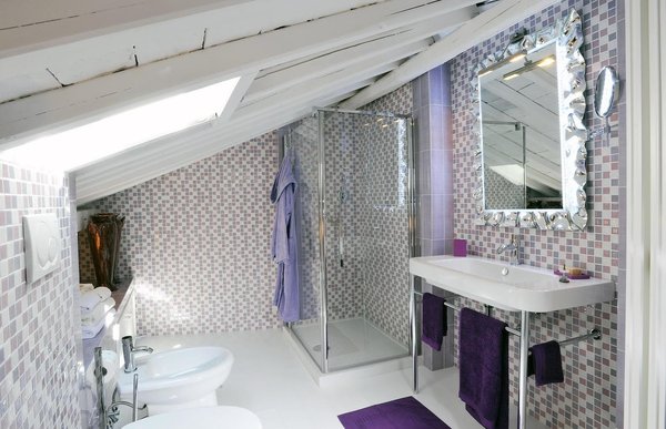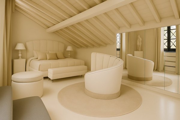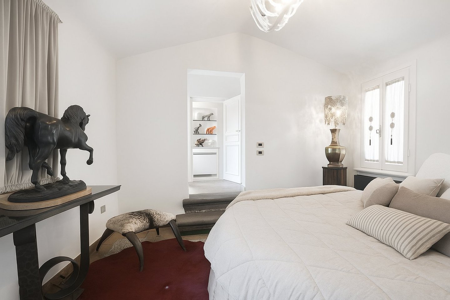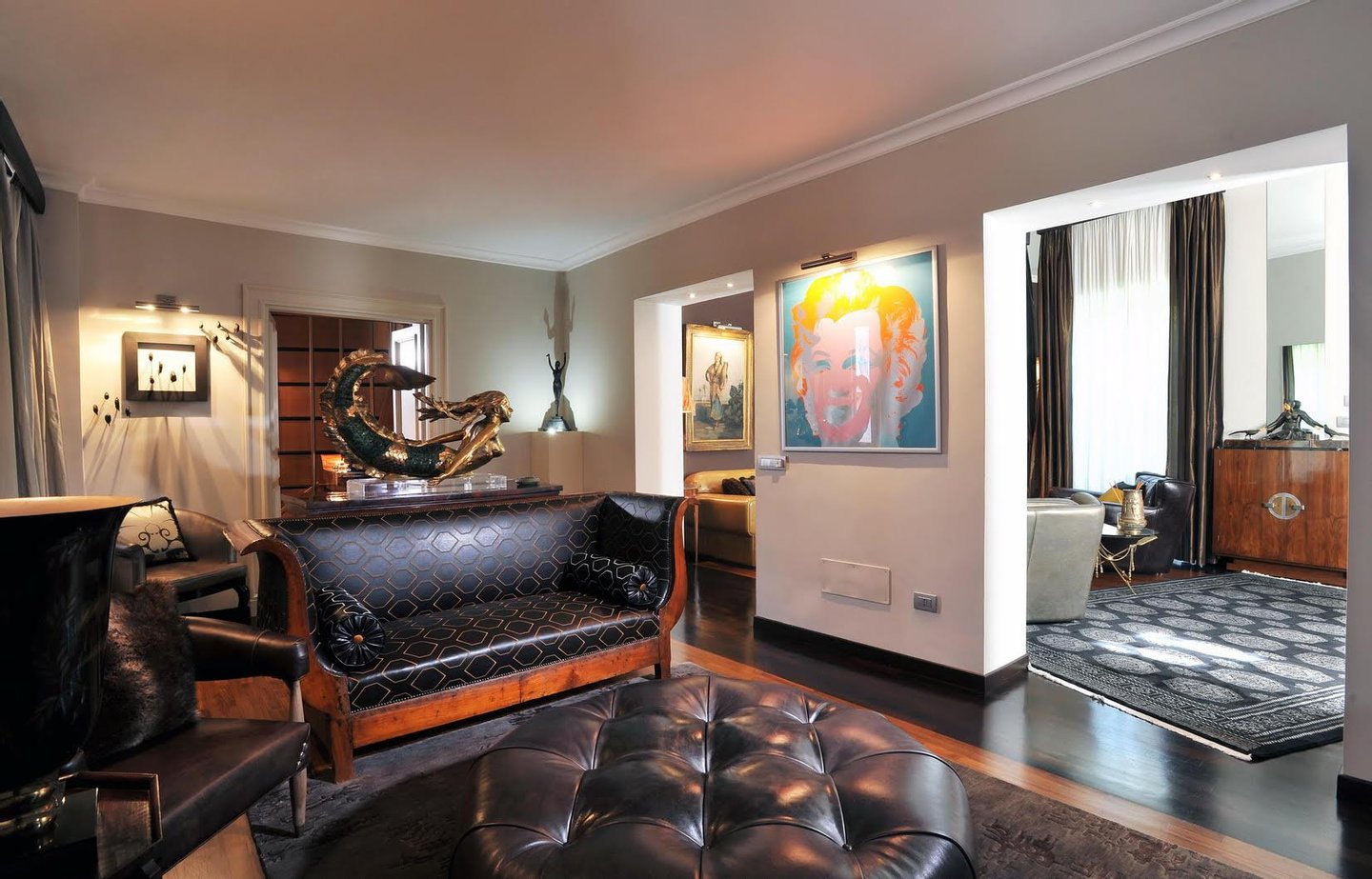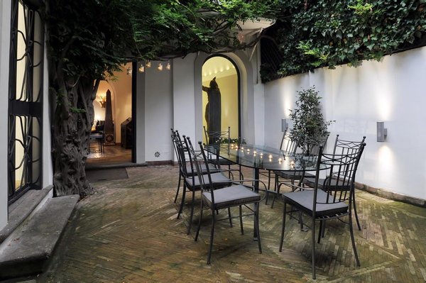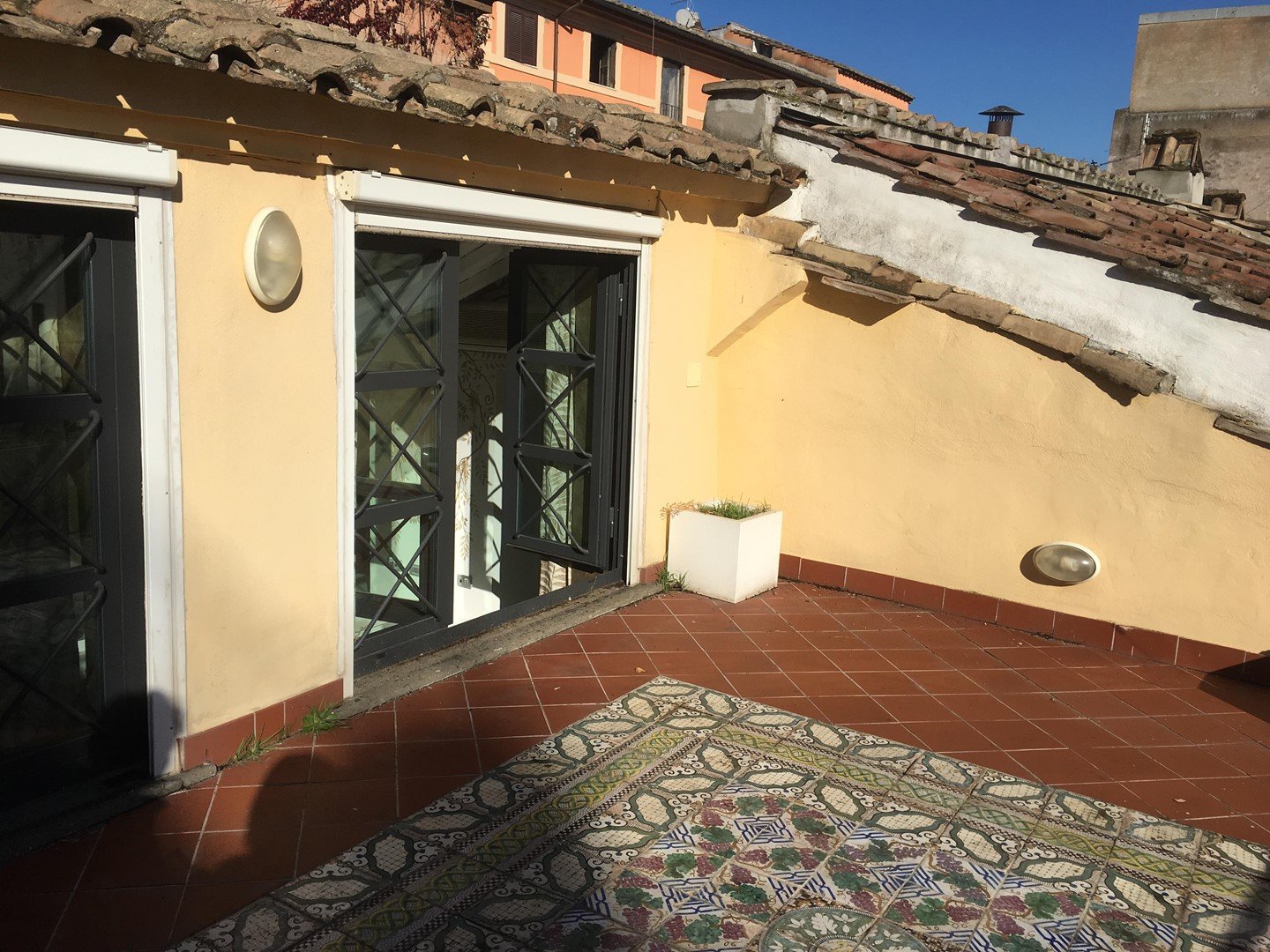 Die innere Marmortreppe führt ins Erdgeschoss, mit Zugang auf einer Seite, durch ein reizvolles Schreibzimmer, in das stilvolle Schlafzimmer mit rundem Bett und eigenem Badezimmer. Andererseits führt es uns in den großen Empfangsraum, der in zwei große Räume unterteilt ist: Einer mit Blick auf den 6 m² großen Balkon mit Blick auf den Innenhof, der andere große Raum führt ins Arbeitszimmer, wo wir einen Kamin und eine Holztreppe finden, die uns in die oberste Ebene des Grundstücks führt, bestehend aus einem sehr hellen Dachzimmer. mit Blick auf die exklusive Terrasse von 46 Quadratmetern und ein Badezimmer mit dem charakteristischen Oberlicht von Trastevere.