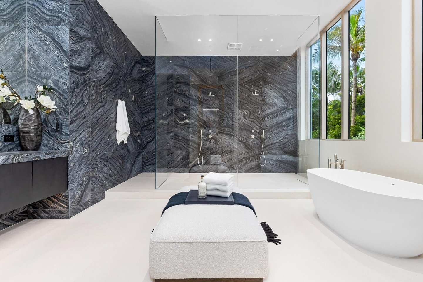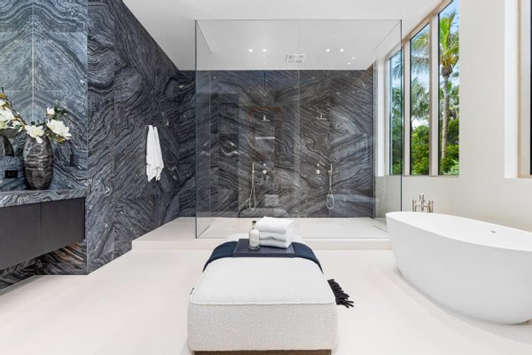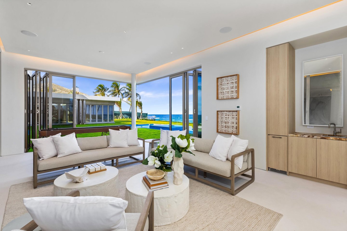 Dieses außergewöhnliche, im Jahr 2024 erbaute, moderne Anwesen setzt einen neuen Maßstab für luxuriöses Wohnen in der exklusiven Gemeinde Manalapan. Die Residenz erstreckt sich über mehr als 25.500 Quadratmeter auf einem bemerkenswerten 1,5 Hektar großen Grundstück mit doppelter Fassade und bietet eine 172 Fuß lange direkte Fassade sowohl zum Atlantischen Ozean als auch zum Intracoastal Waterway. Ein privates 50-Fuß-Dock mit Bootslift, zwei Jetski-Liften und Anlegestellen bietet mühelosen Zugang zum Wasser. Ein großes Foyer mit doppelter Höhe und kaskadenförmigen Wasserspielen hinterlässt einen unvergesslichen ersten Eindruck. Das offene, lichtdurchflutete Interieur bietet einen atemberaubenden Meerblick und eine elegante Mischung aus zeitgenössischem Design und Küstenraffinesse. Zu den Oberflächen gehören Kalksteinplattenböden, breite Eichendielen und großflächige Glaswände, die den Innenraum mit Wärme und Wärme aufwerten.