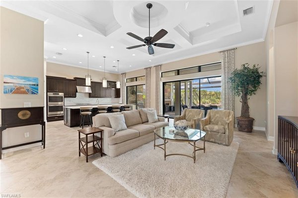 Perfekt gelegen auf einem der begehrtesten Grundstücke der Gemeinde, bietet diese Residenz mit 3 Schlafzimmern + Höhle und 3 Bädern einen gehobenen Lebensstil mit herrlichem Blick auf das 9. Loch und das ruhige Wasser dahinter. Dieses Haus befindet sich im Herzen der erstklassigen Golf- und Country-Club-Community von North Naples und verbindet meisterhaft Raffinesse mit alltäglicher Leichtigkeit und wird mit einer VOLLEN GOLFMITGLIEDSCHAFT INKLUSIVE geliefert, die sofortigen Zugang zu einem der exklusivsten Golfplätze der Gegend gewährt. Im Inneren ergänzen hohe Decken und raffinierte Oberflächen ein fließendes, offenes Konzept. Die Gourmetküche ist durch eine übergroße Insel, Edelstahlgeräte, ein Gaskochfeld und eine begehbare Speisekammer verankert, ideal für alles, von ungezwungenen Morgen bis hin zu gehobenem Gastgeben. Die Hauptsuite ist ein Refugium mit einer Badewanne im Spa-Stil, zwei Waschtischen und maßgefertigten Schränken. Die weitläufige Veranda wurde für diejenigen entwickelt, die für das Leben im Innen- und Außenbereich leben, und verfügt über einen glitzernden Pool und ein Spa, einen großen Essbereich, eine Kaminlounge und eine Außenküche mit postkartenperfektem Blick auf das Fairway und den See. Jenseits des Hauses bietet Esplanade einen Lebensstil auf Resort-Niveau mit einem privaten 18-Loch-Meisterschaftsgolfplatz, einem Clubhaus, einem Pool im Resort-Stil mit Cabanas und Tiki-Bar, einem kulinarischen Zentrum mit gehobener und ungezwungener Küche, einem Full-Service-Spa, einem Fitnesscenter, Tennis, Pickleball und vielem mehr, alles inmitten von Wanderwegen und geschützten Naturschutzgebieten.