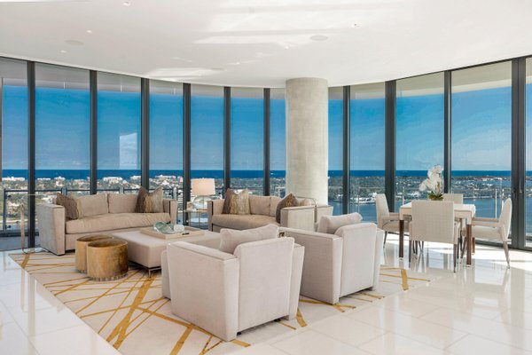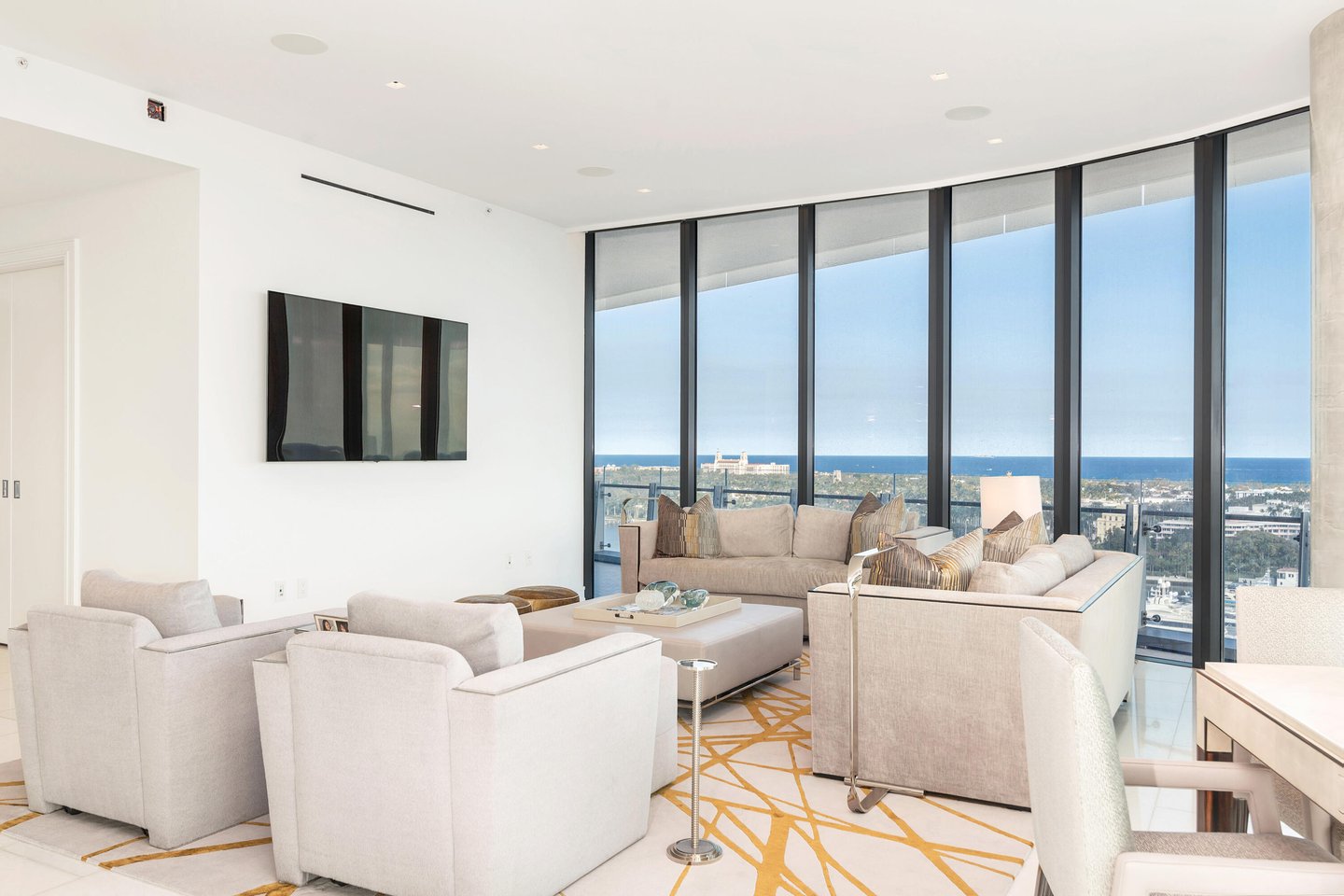 Die begehrte Linie 04 am Bristol ist wirklich bemerkenswert. Wenn Sie diese atemberaubende Residenz in der oberen Etage durch ein privates Foyer betreten, werden Sie von einem atemberaubenden Blick auf das Wasser im Osten und Süden begrüßt. Diese