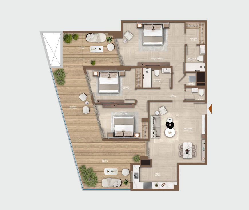 Genießen Sie den Luxus von Concierge- und Valet-Services sowie den Komfort von sicheren Parkplätzen und schnellen Aufzügen. Tauchen Sie ein in die Welt der Smart-Home-Technologie, die Ihren Alltag erleichtert und Ihren Wohnkomfort steigert.