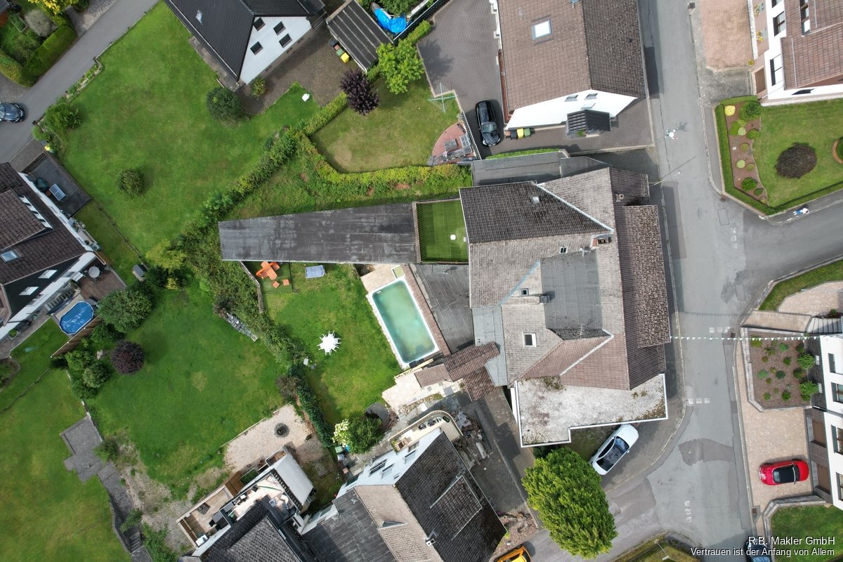 Auf einem ca. 1.001 m² großen Grundstück im idyllischen Ortsteil Lenhausen befindet sich dieser weitläufige Gaststättenkomplex in Massivbauweise. Rund 40 % der Fläche sind bebaut, der restliche Bereich ist teils befestigt, teils gärtnerisch gestaltet. Das Grundstück fällt sanft in nordwestlicher Richtung ab.