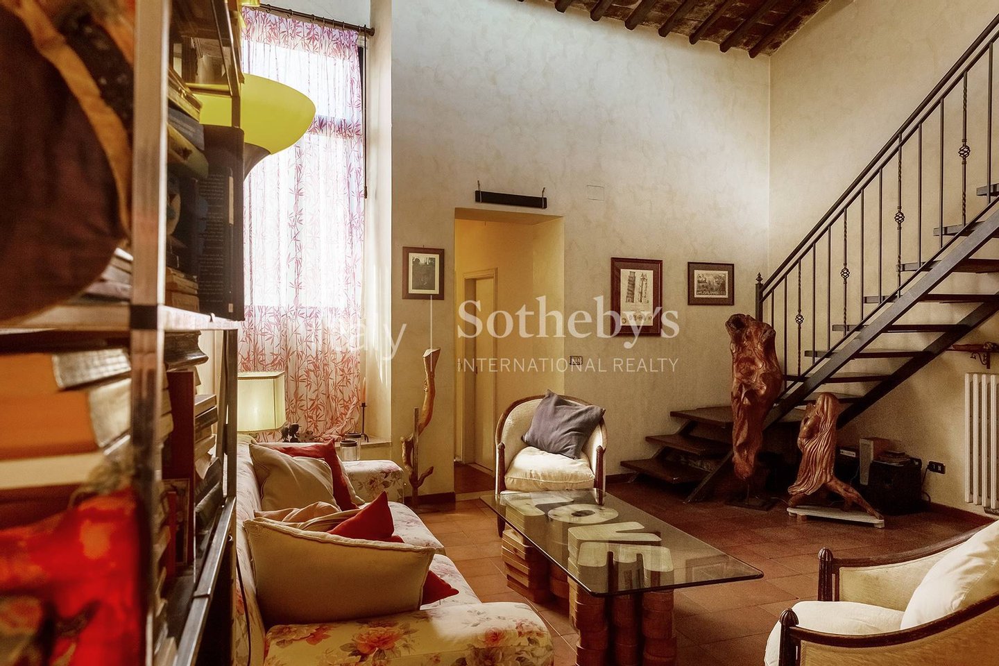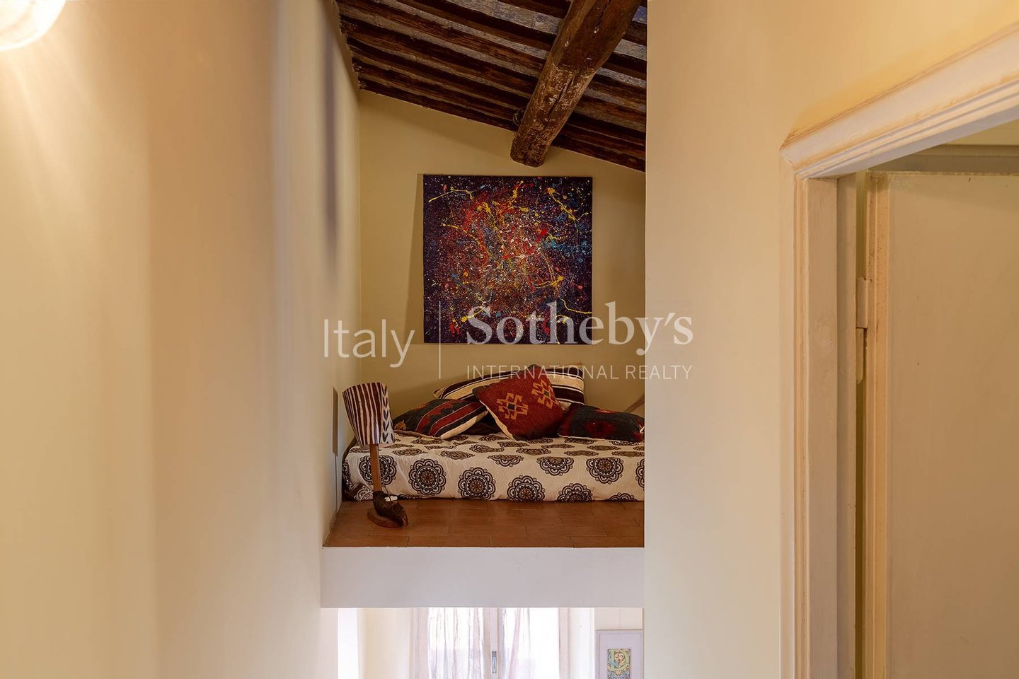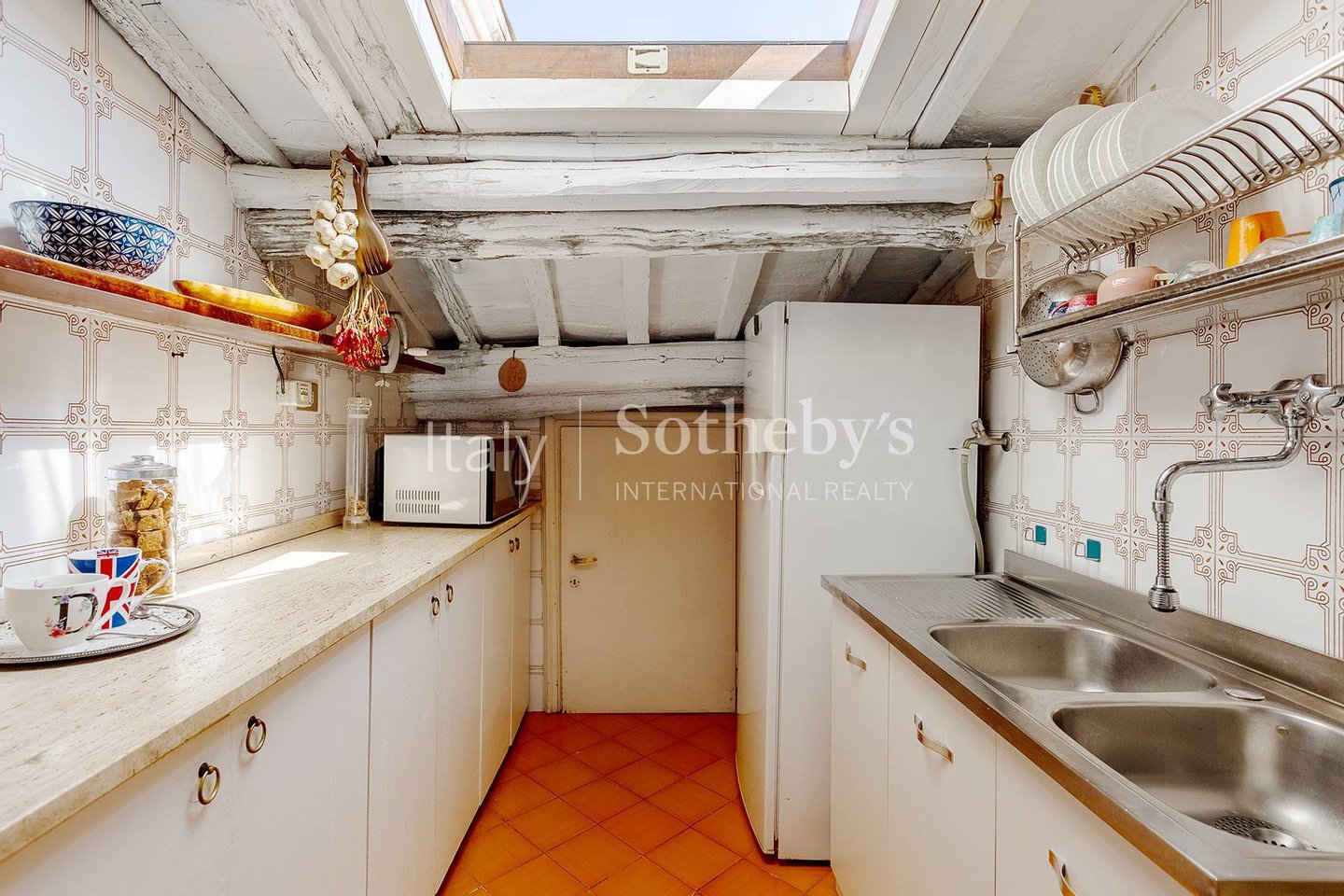 Dieses eindrucksvolle Apartment, reich an Charme und Persönlichkeit, befindet sich im obersten Stockwerk eines charakteristischen Palazzos aus dem 15. Jahrhundert in e