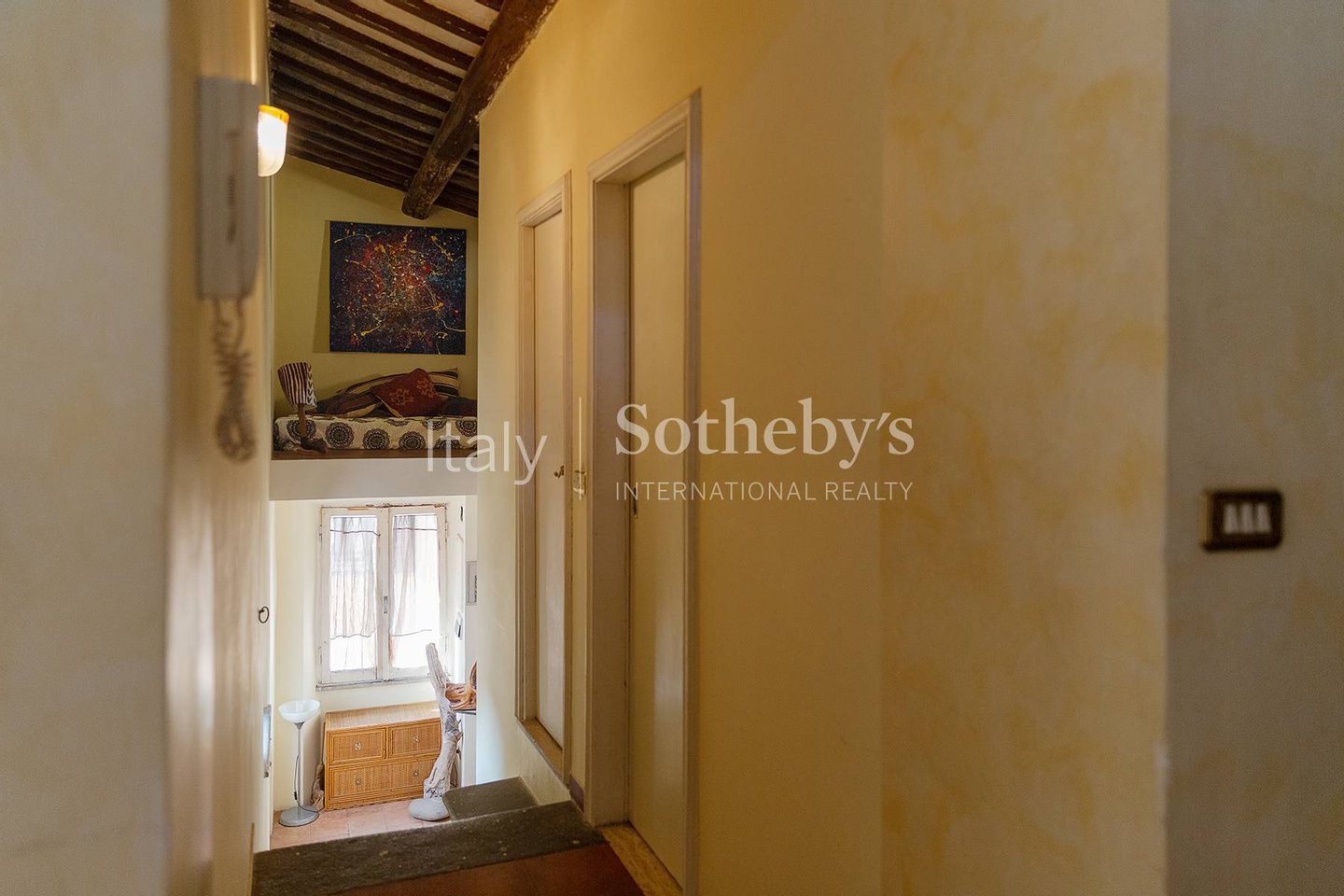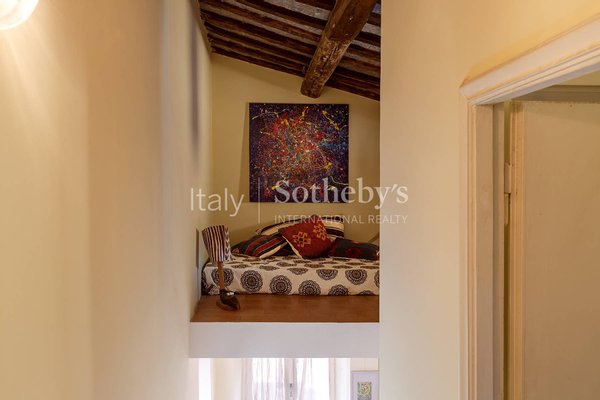 Dieses eindrucksvolle Apartment, reich an Charme und Persönlichkeit, befindet sich im obersten Stockwerk eines charakteristischen Palazzos aus dem 15. Jahrhundert in einer der ruhigsten und begehrtesten Straßen des Viertels Pigna, nur wenige Schritte