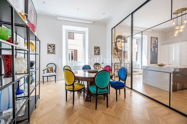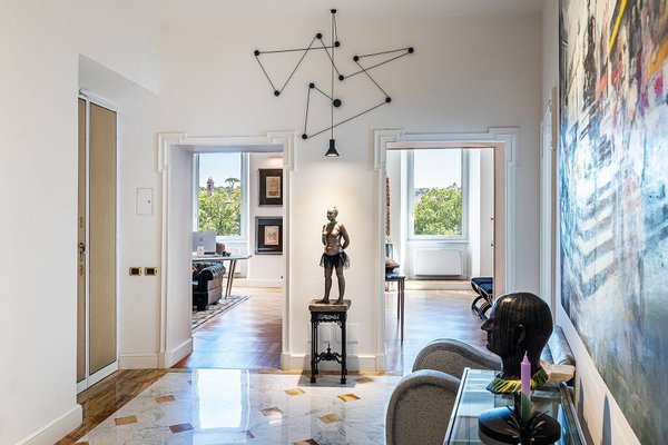 Mit Blick auf den zeitlosen Charme des Tiber und eingerahmt von den historischen Kuppeln, die die römische Skyline prägen, befindet sich diese exklusive, schlüsselfertige Residenz von ca. 400 m² in einem eleganten Altbau mit Aufzug, nur wenige Schritte von der Piazza Cavour und den repräsentativsten Straßen des Zentrums entfernt.