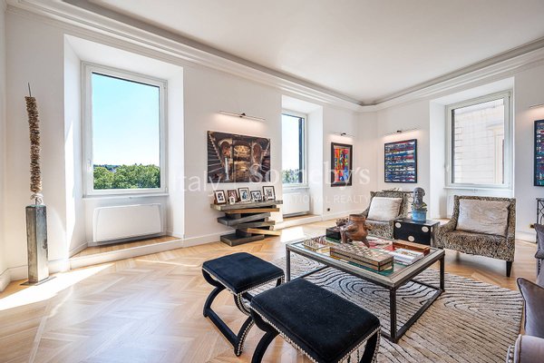 Mit Blick auf den zeitlosen Charme des Tiber und eingerahmt von den historischen Kuppeln, die die römische Skyline prägen, befindet sich diese exklusive, schlüsselfertige Residenz von ca. 400 m² in einem eleganten Altbau mit Aufzug, nur wenige