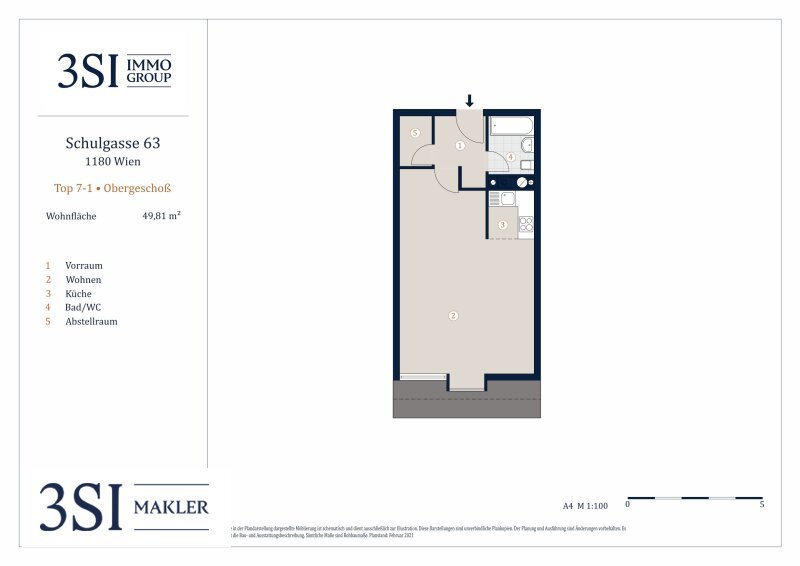 Zum Verkauf gelangt eine perfekt aufgeteilte Single-Wohnung in einem gepflegten Neubau in Top-Lage des 18. Bezirks. Diese Wohneinheit überzeugt mit einem durchdachten Grundriss und Helligkeit. Sie verfügt über ca. 50 m² Wohnfläche und teilt sich wie folgt auf: