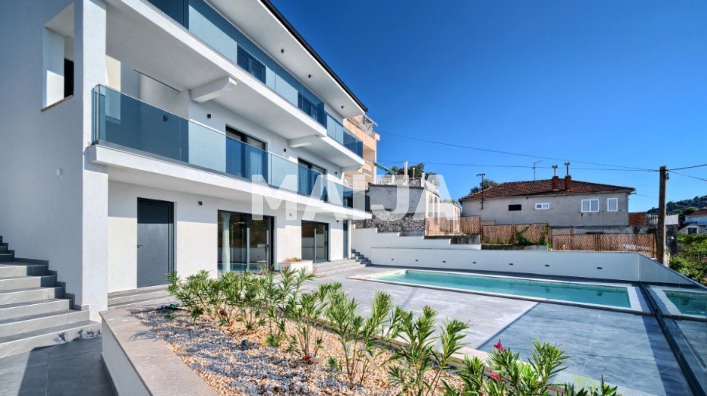 Dieses 3-stöckige, 225 m2 große Anwesen verfügt über 5 geräumige Schlafzimmer, 5 Badezimmer und 6 Zimmer, die absolute Privatsphäre und einen atemberaubenden Meerblick bieten. Genießen Sie den direkten Zugang zu einer Terrasse im Erdgeschoss, einem charmanten Außenbereich im ersten Stock und weitläufigen Außenbereichen im zweiten Stock. Die Unterkunft verfügt über eine Luftwärmepumpe, einen Energieausweis der Klasse A und einen Swimmingpool. Nur wenige Autominuten vom schönen Yachthafen Frapa, Restaurants und Geschäften entfernt, bietet Rogoznica eine perfekte Mischung aus Ruhe und Bequemlichkeit.