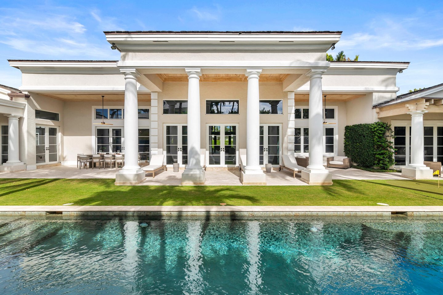 In der Nähe des begehrten North End von Palm Beach gelegen, befindet sich dieses atemberaubende Anwesen auf einem großzügigen halben Hektar großen Grundstück und bietet ein Volumen mit doppelter Höhe und hohen 14-Zoll-Decken. Der geteilte Grundriss