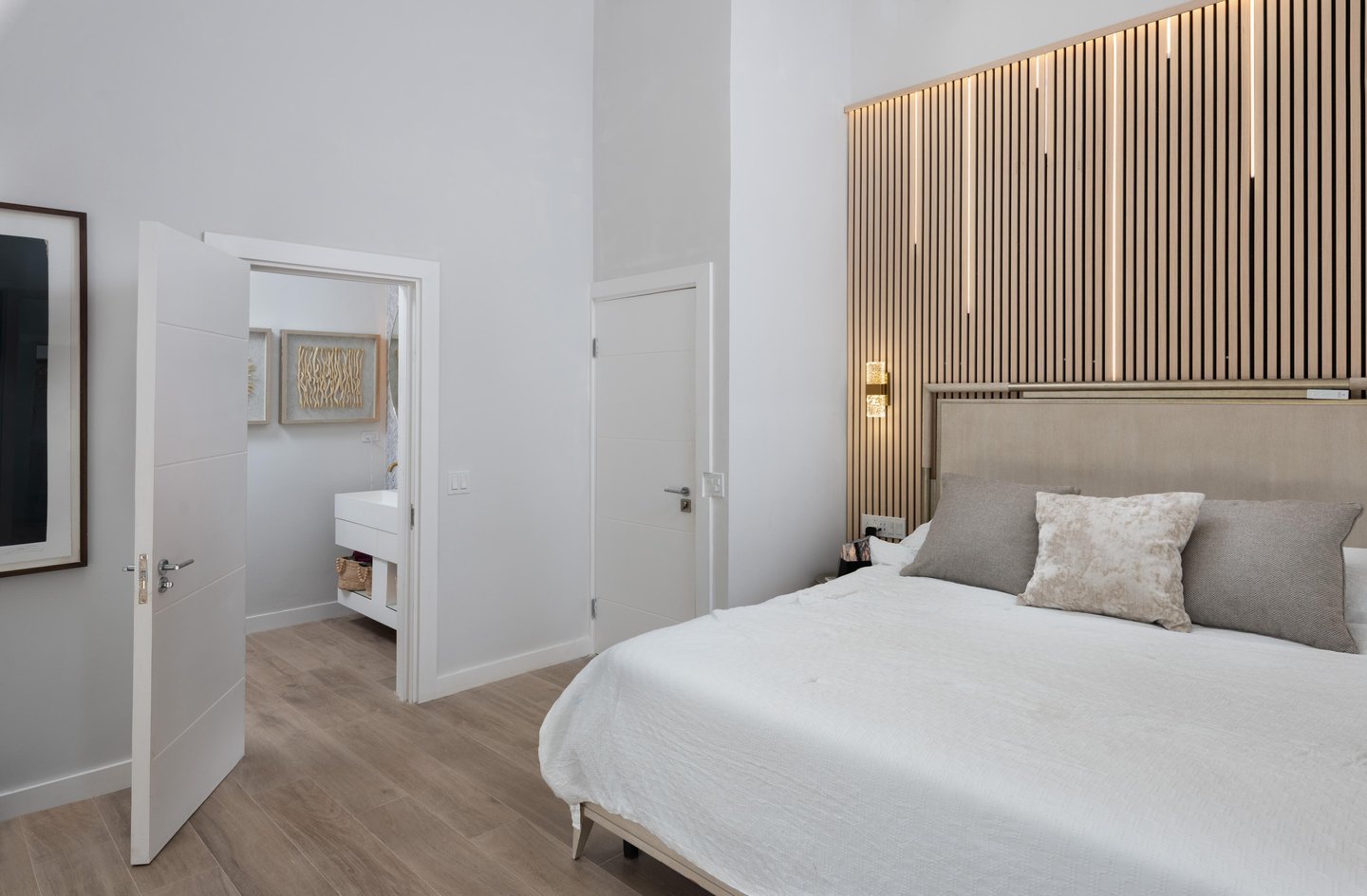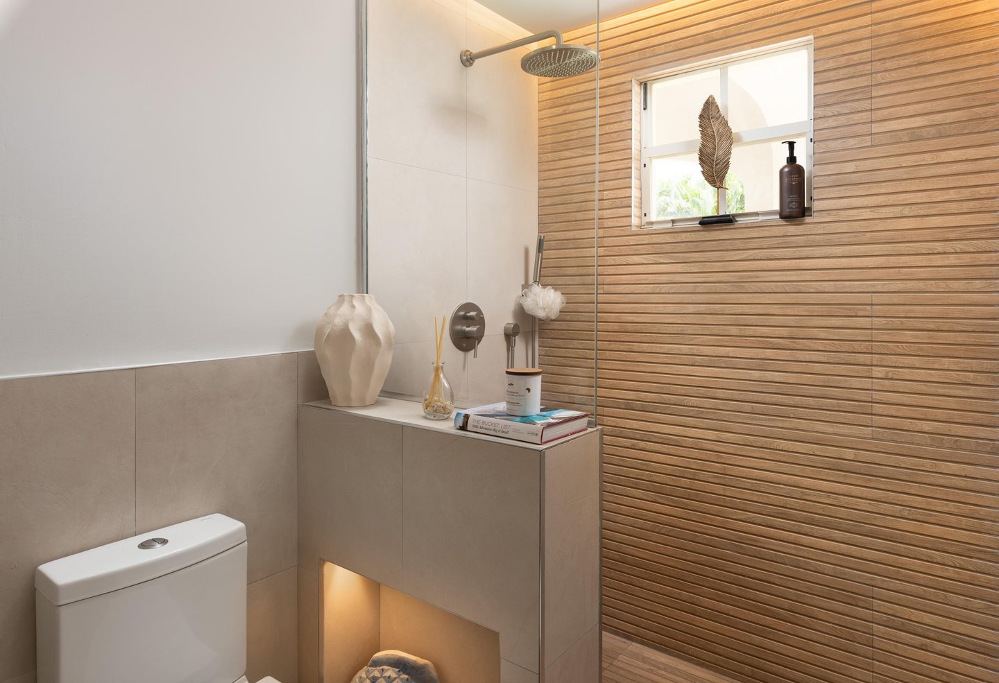 - 3 Schlafzimmer mit eigenem Bad – Zwei im Haupthaus mit Einbauschränken, darunter eine Master-Suite, die auf eine private Terrasse führt. Ein drittes Gästehaus mit eigenem Bad, das von außen zugänglich ist, sorgt für Privatsphäre und Vielseitigkeit.