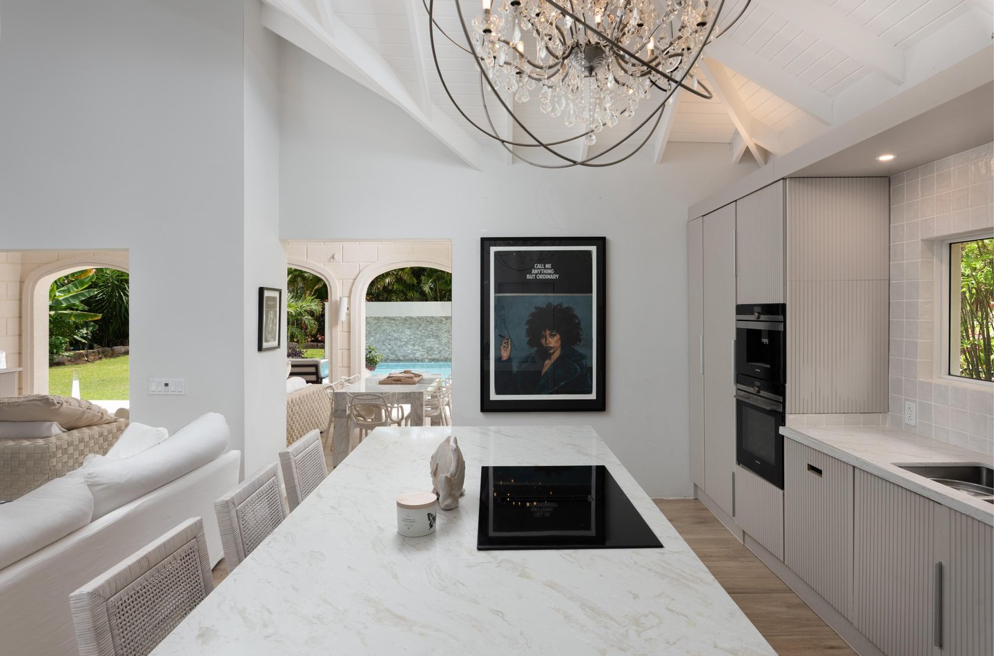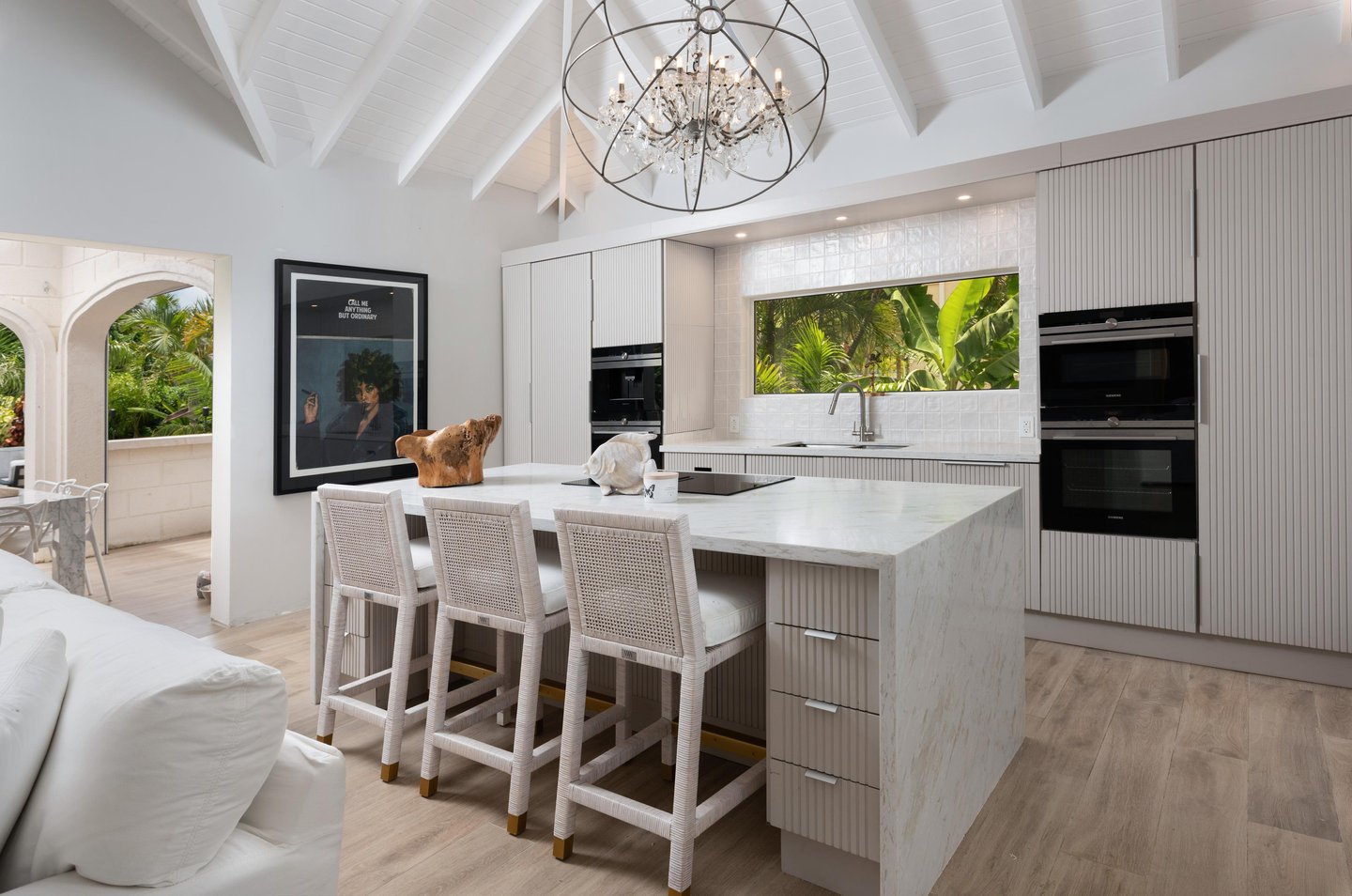 - Designer-Küche – Komplett ausgestattet mit Quarz-Arbeitsplatten und hochwertigen Siemens-Einbaugeräten: zwei Backöfen, Mikrowelle, Kaffeemaschine, Downdraft-Induktionskochfeld, Geschirrspüler und Ganzkörper-Kühl- und Gefrierschrank.